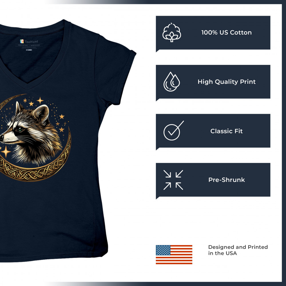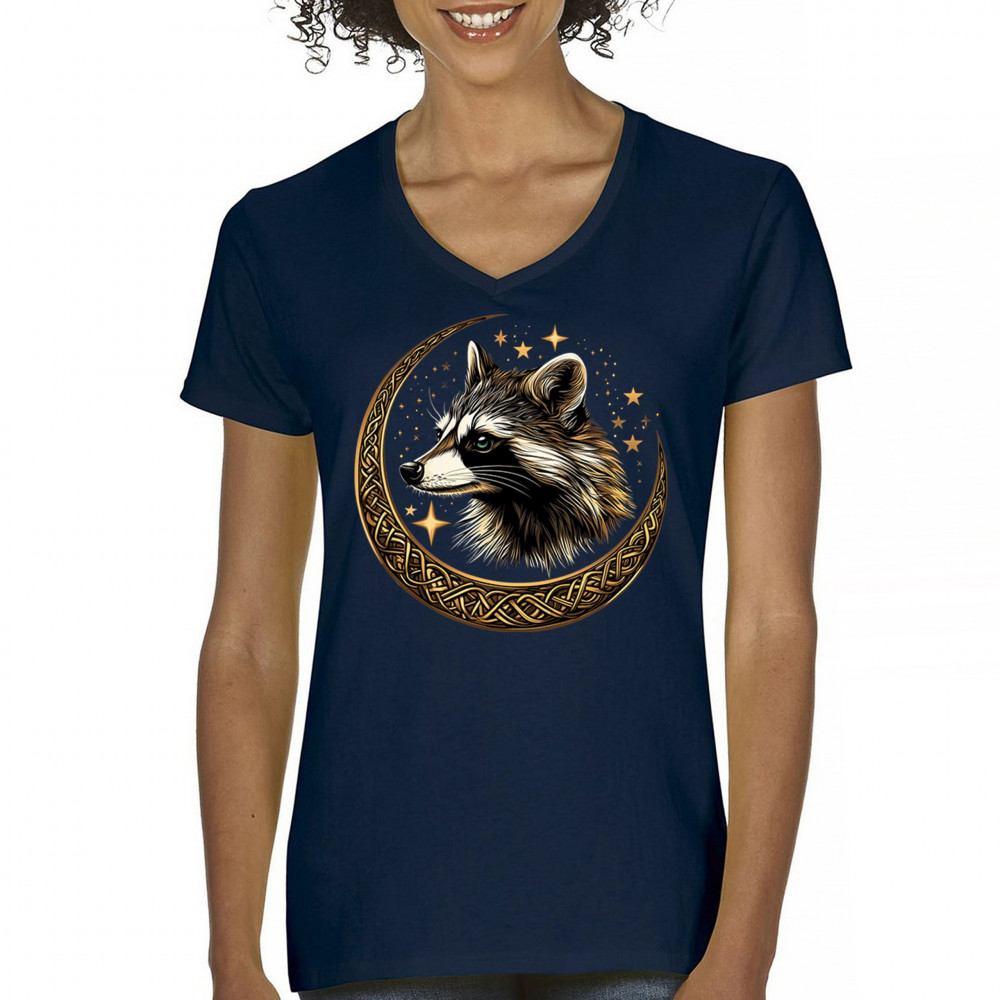 Cosmic raccoon design in Celtic moon. Symbol of adaptability, mystery, and spiritual intelligence. A perfect gift for wild and curious souls.