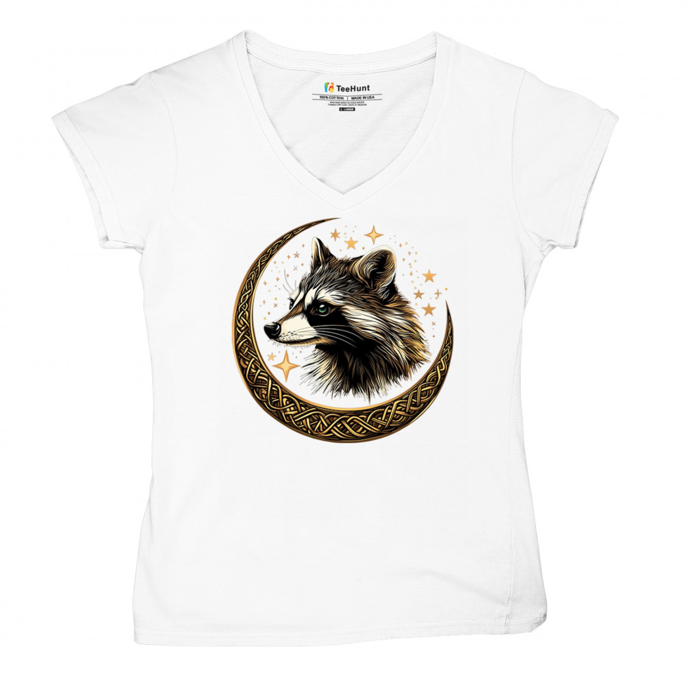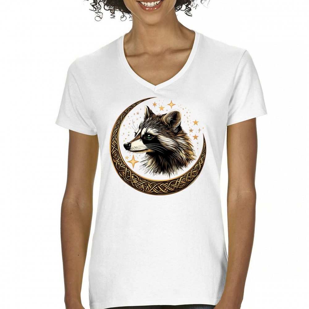 Cosmic raccoon design in Celtic moon. Symbol of adaptability, mystery, and spiritual intelligence. A perfect gift for wild and curious souls.