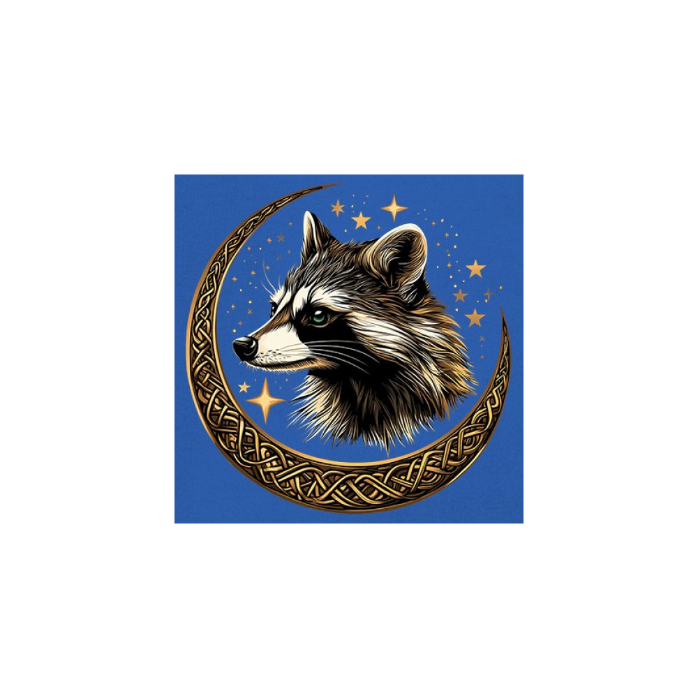Cosmic raccoon design in Celtic moon. Symbol of adaptability, mystery, and spiritual intelligence. A perfect gift for wild and curious souls.