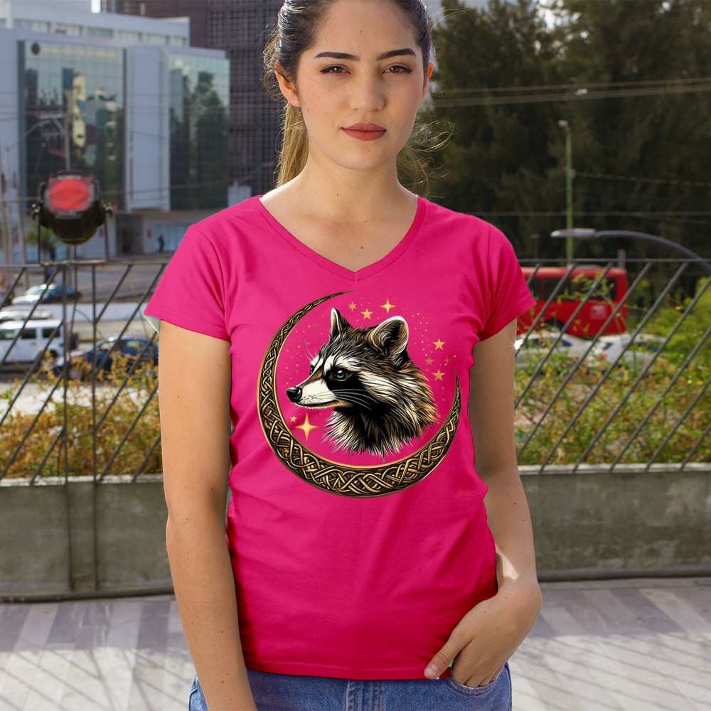 Cosmic raccoon design in Celtic moon. Symbol of adaptability, mystery, and spiritual intelligence. A perfect gift for wild and curious souls.