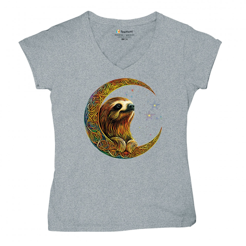 Peaceful sloth in Celtic crescent moon with cosmic sky. Symbol of mindfulness, rest, and intentional living. A calm, magical fantasy design.
