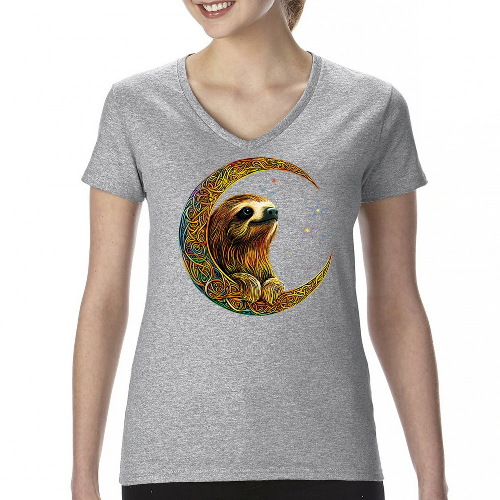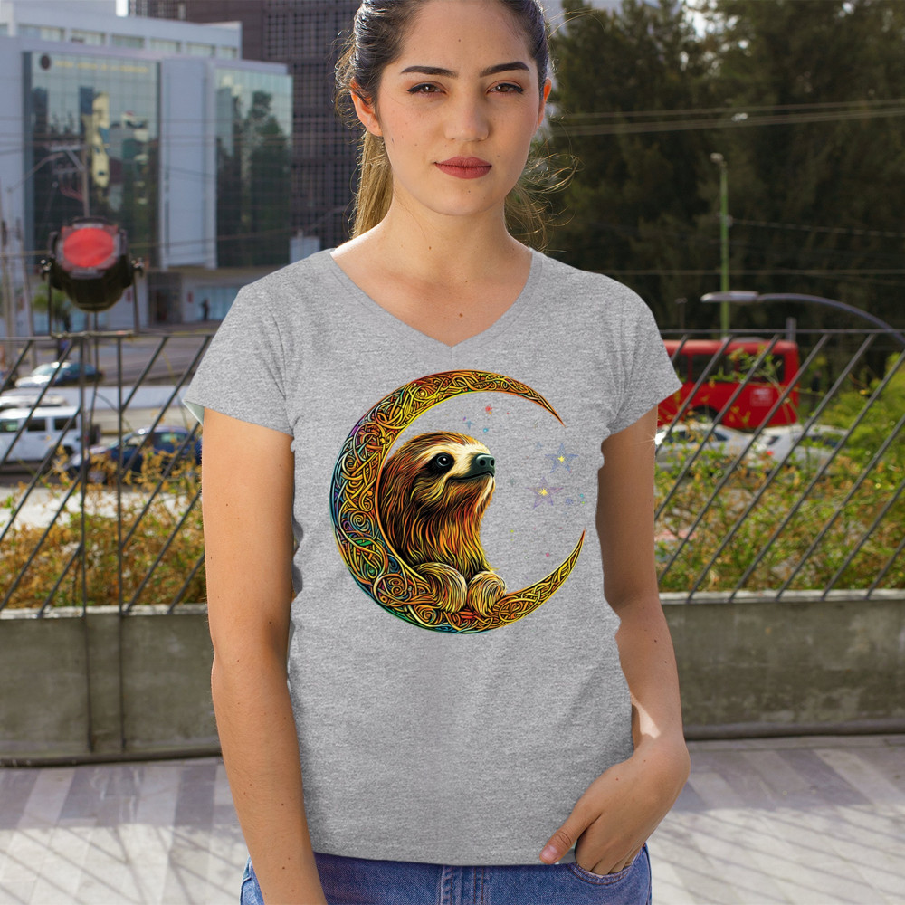 Celebrate peace and presence with this stunning sloth design cradled in a gold Celtic crescent moon. Surrounded by a vibrant starry sky, the image blends jungle whimsy with tribal patterns and mystical vibes. A perfect design for lovers of fantasy animals, mindfulness, and slow living. A beautiful tribute to spiritual stillness and cosmic calm.