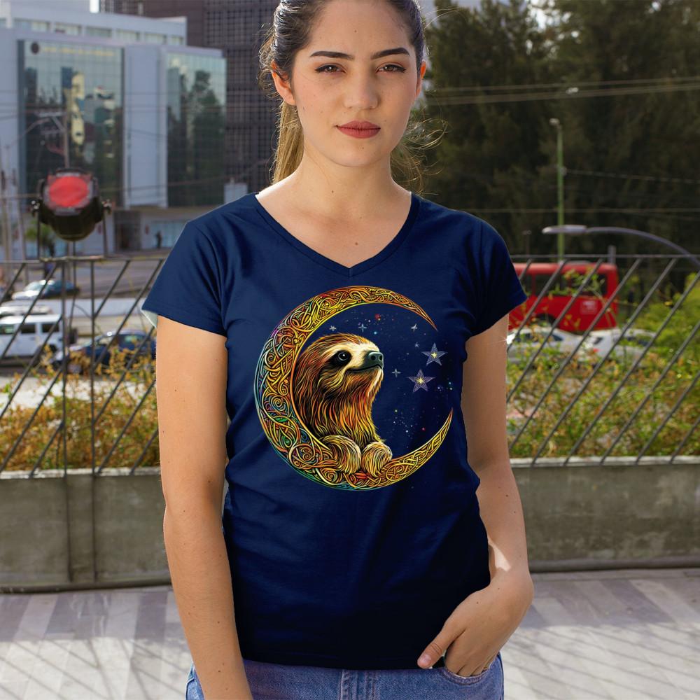 Celebrate peace and presence with this stunning sloth design cradled in a gold Celtic crescent moon. Surrounded by a vibrant starry sky, the image blends jungle whimsy with tribal patterns and mystical vibes. A perfect design for lovers of fantasy animals, mindfulness, and slow living. A beautiful tribute to spiritual stillness and cosmic calm.
