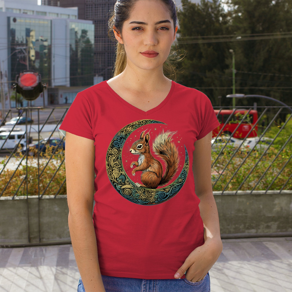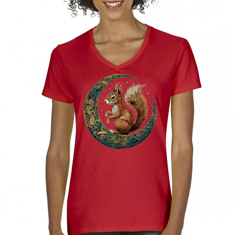 Celebrate agility, awareness, and forest wisdom with this magical red squirrel design. Nestled in a green-gold Celtic crescent moon and backed by a starry cosmic sky, this piece merges natural energy with tribal patterns and celestial wonder. A unique design for animal spirit believers, forest wanderers, and fantasy nature fans.