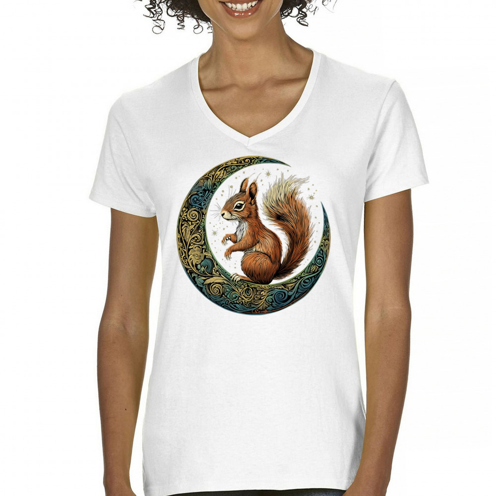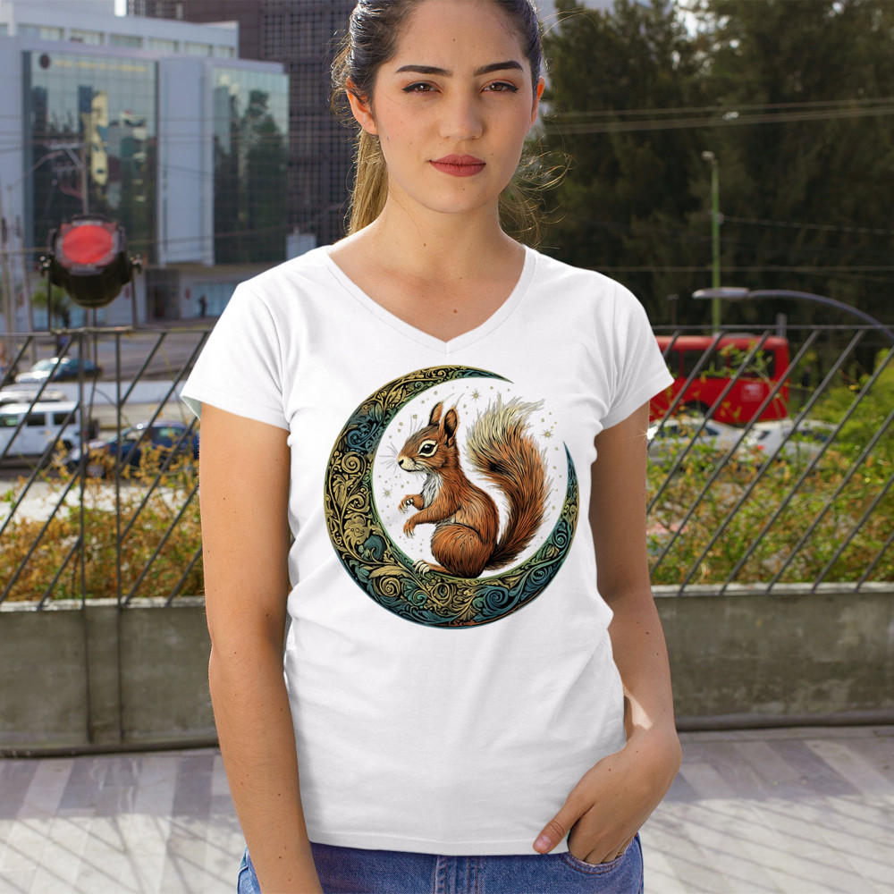 Celebrate agility, awareness, and forest wisdom with this magical red squirrel design. Nestled in a green-gold Celtic crescent moon and backed by a starry cosmic sky, this piece merges natural energy with tribal patterns and celestial wonder. A unique design for animal spirit believers, forest wanderers, and fantasy nature fans.