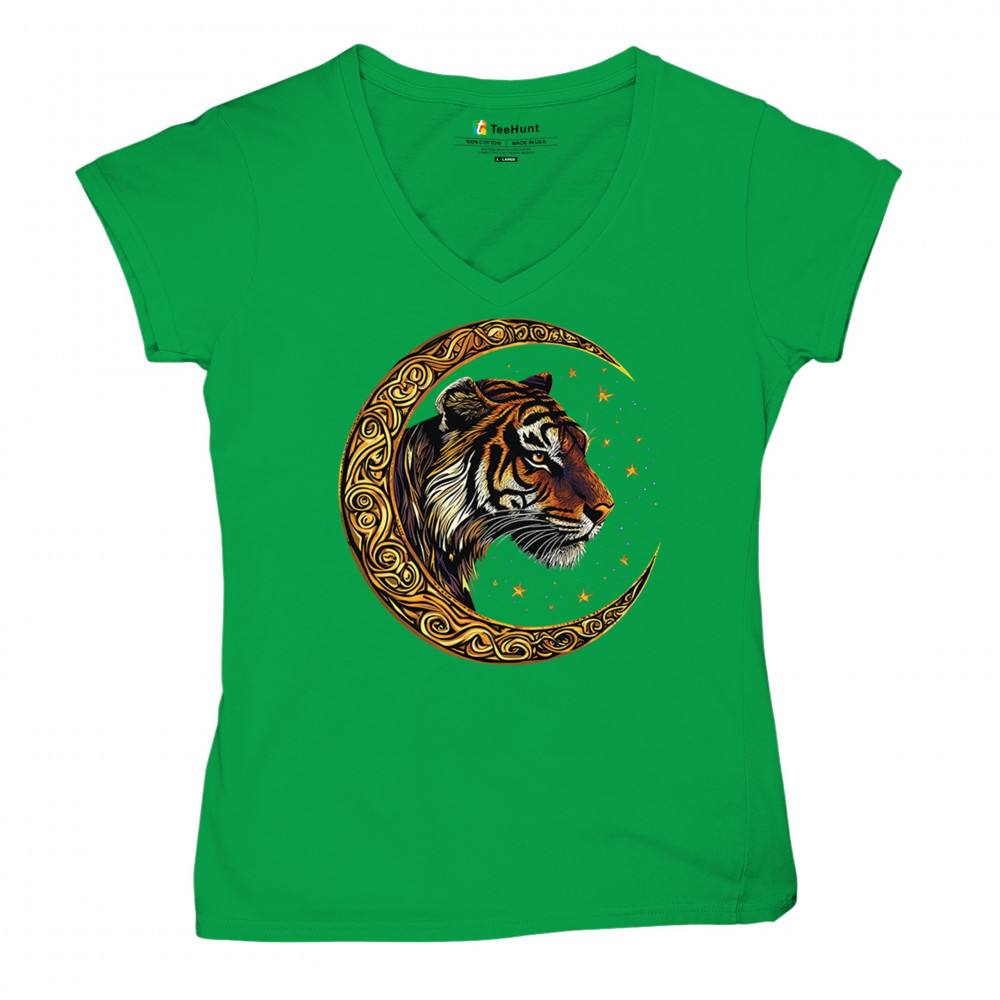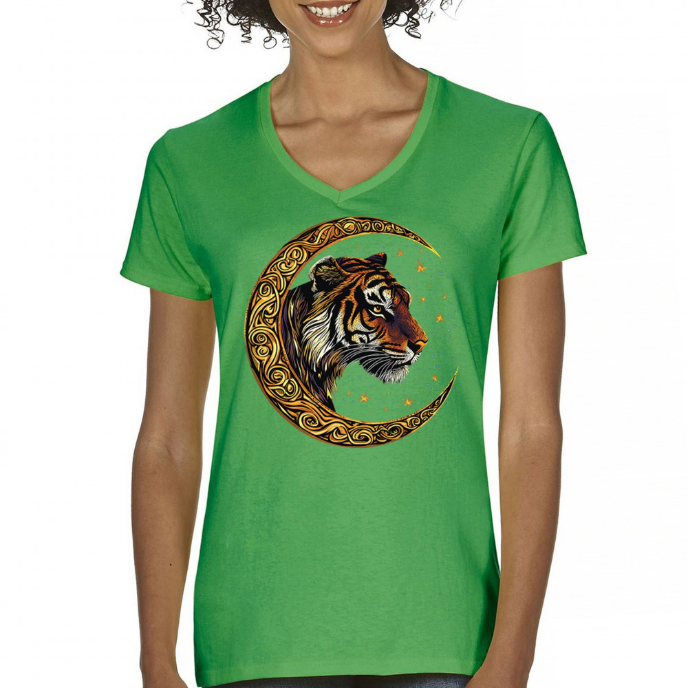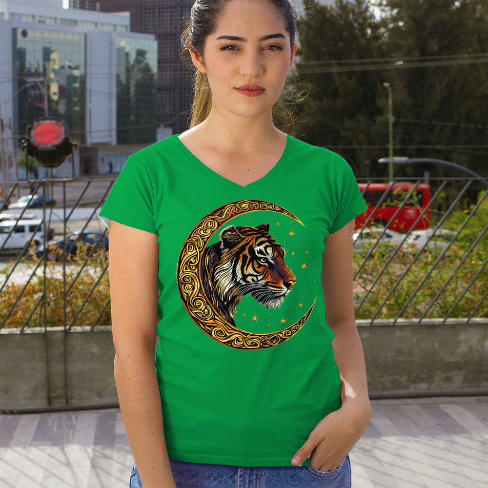 Bold tiger design in Celtic moon with cosmic sky. Symbol of strength, instinct, and jungle mysticism. Great for animal lovers and fantasy fans.