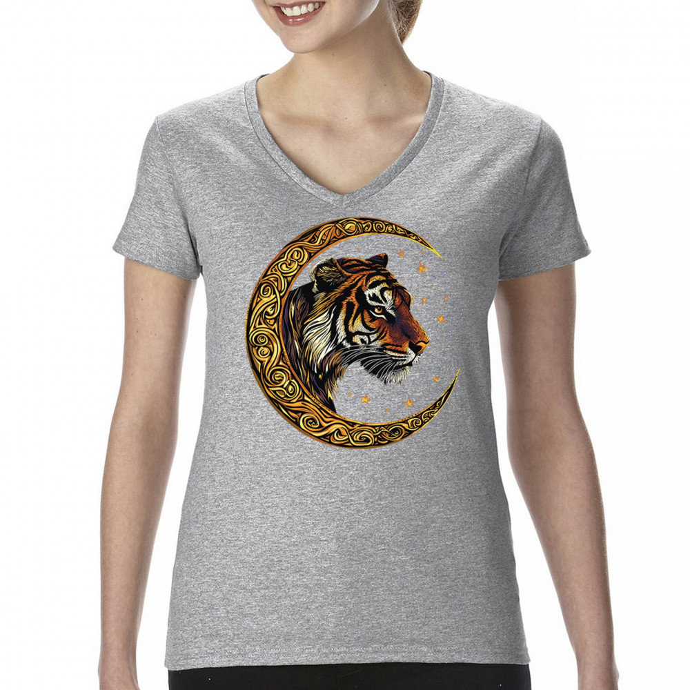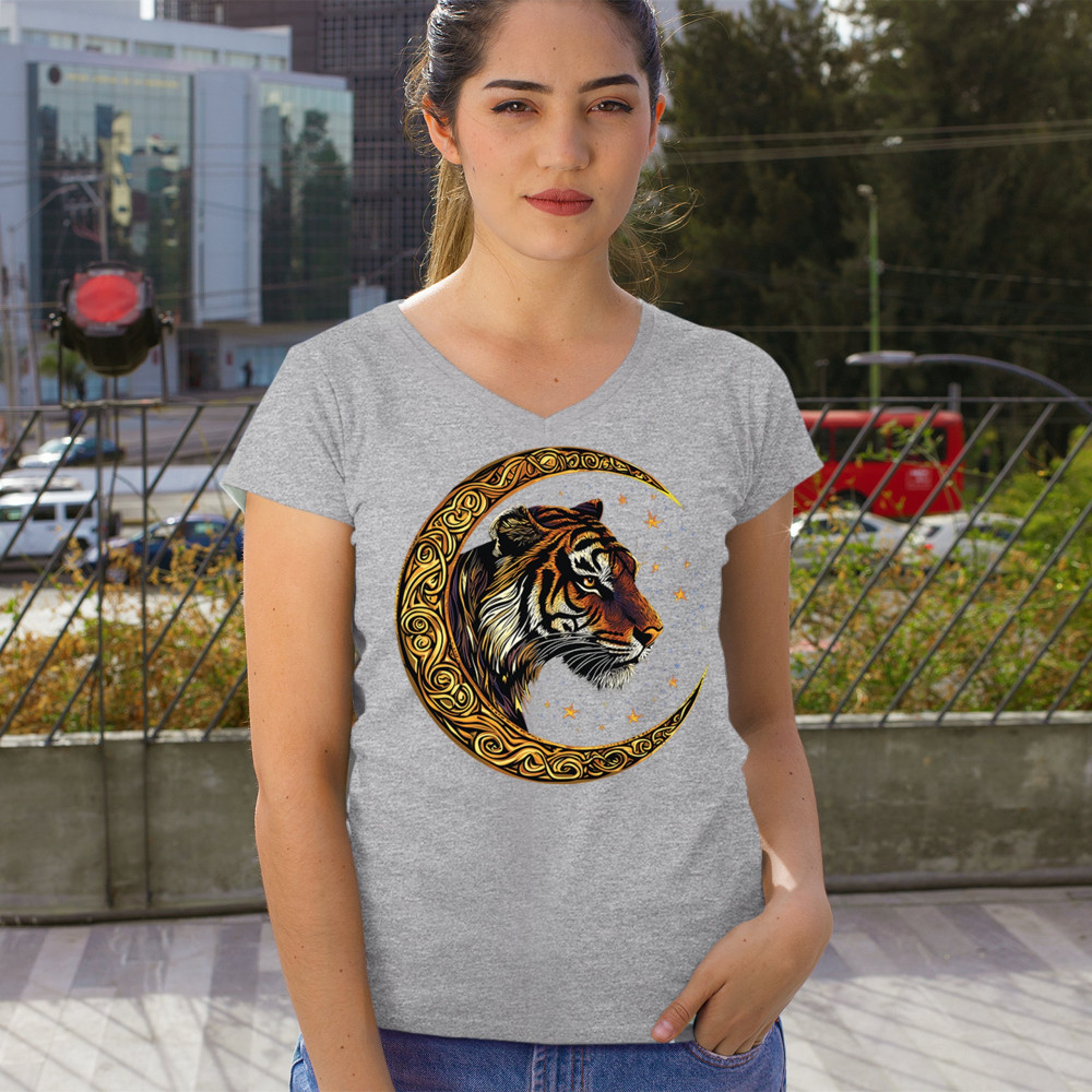 Bold tiger design in Celtic moon with cosmic sky. Symbol of strength, instinct, and jungle mysticism. Great for animal lovers and fantasy fans.