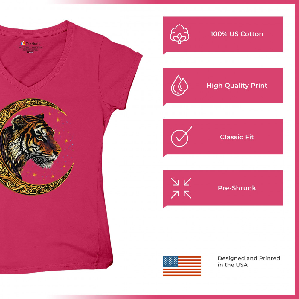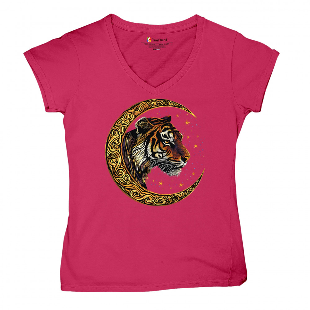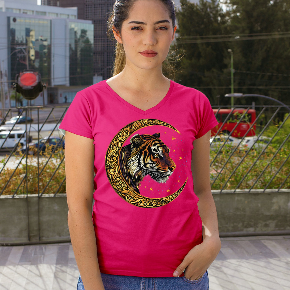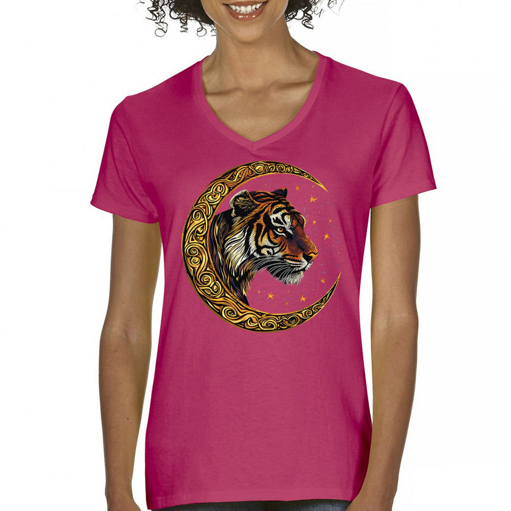 Bold tiger design in Celtic moon with cosmic sky. Symbol of strength, instinct, and jungle mysticism. Great for animal lovers and fantasy fans.