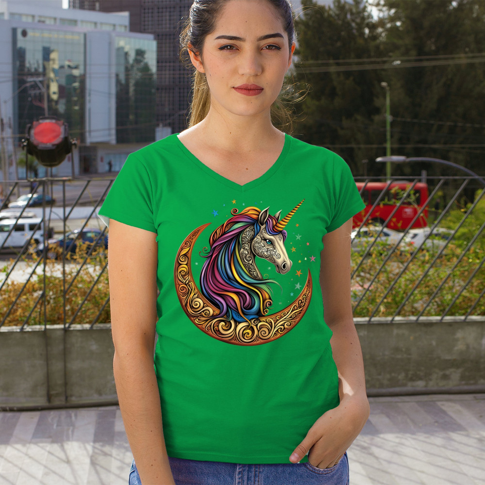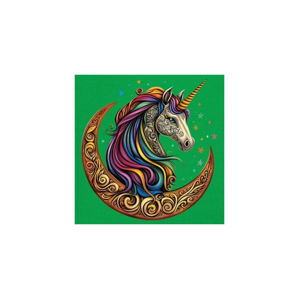 Rainbow-maned unicorn in golden Celtic moon design—perfect for fantasy lovers, dreamers, and unicorn fans who believe in magic and spirit.