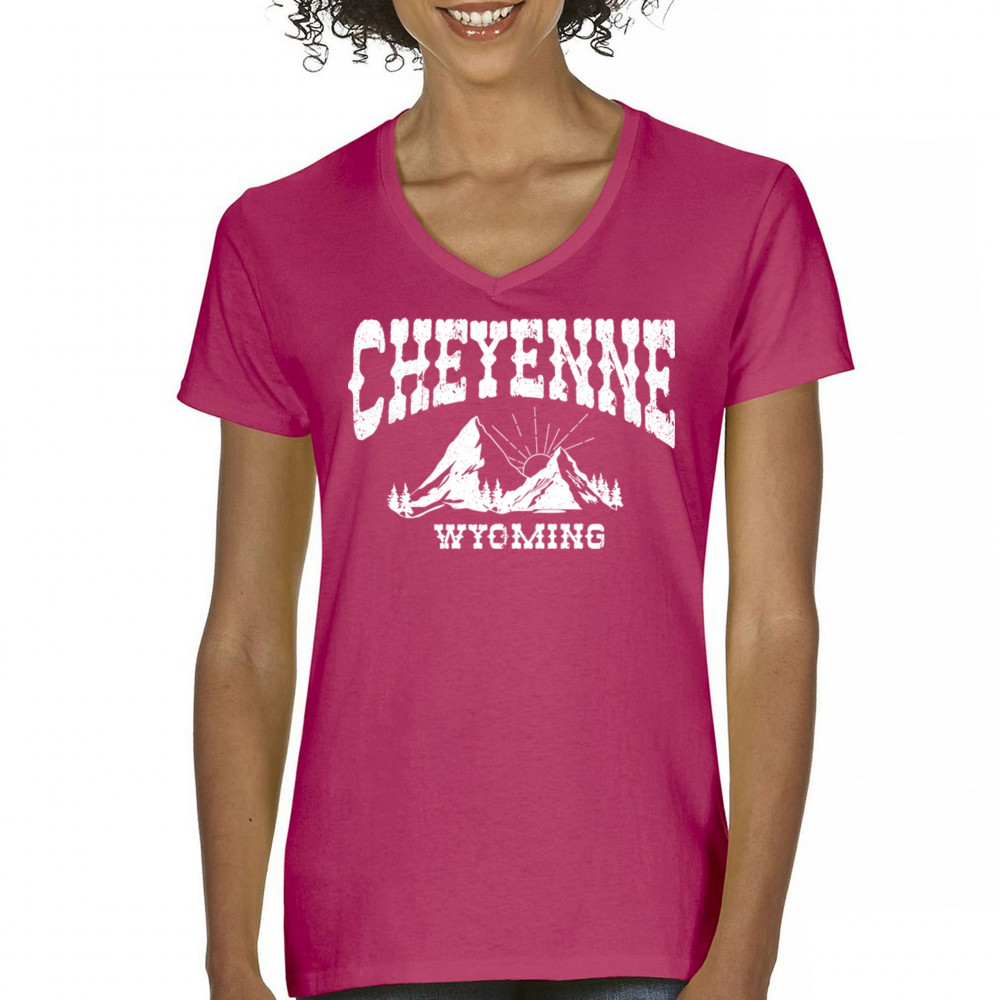 Vintage Cheyenne Wyoming design with mountain sunrise for outdoor lovers and locals. Perfect for travel, hiking, or Western pride.
