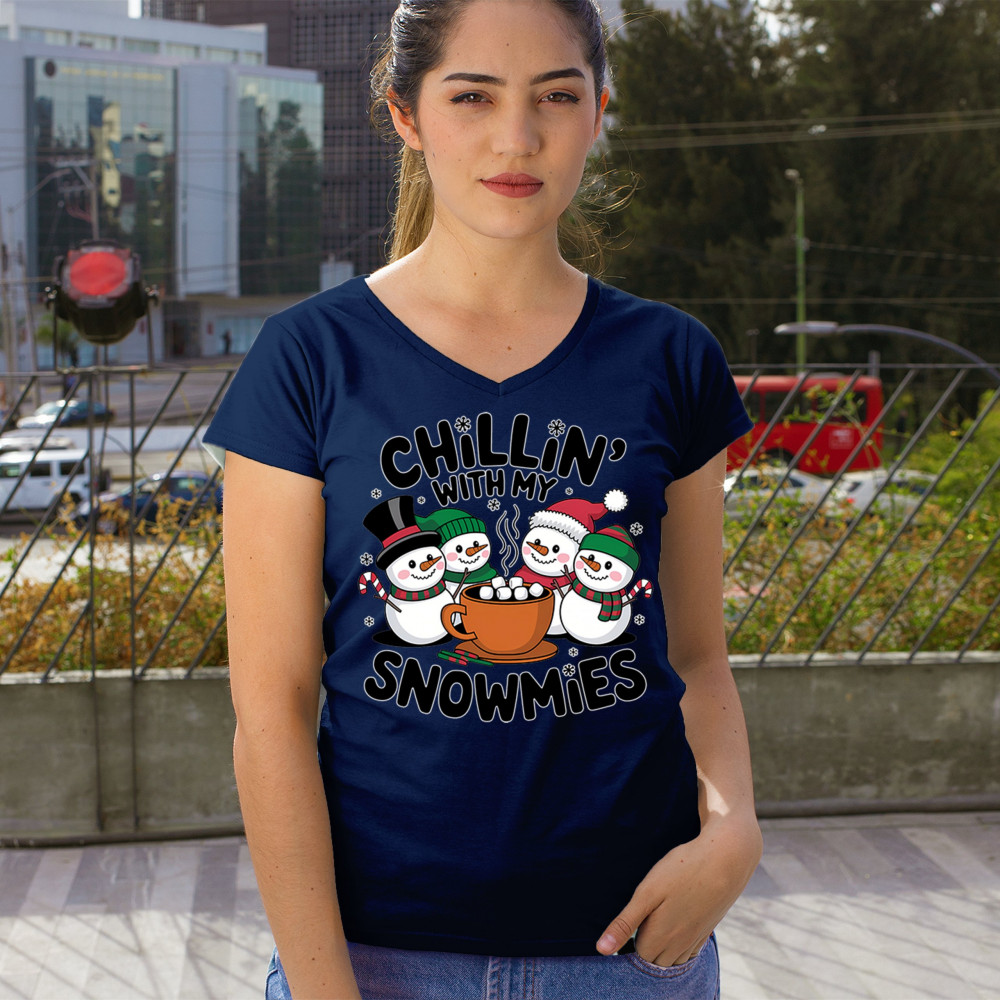 A cute and cheerful winter design showing happy snowmen sharing hot cocoa, perfect for Christmas gatherings, holiday events, seasonal photos, white-elephant gifting, festive family nights, winter celebrations, cozy weekend vibes, and fans of playful holiday humor. A fun graphic for anyone who loves bright and friendly Christmas styles.