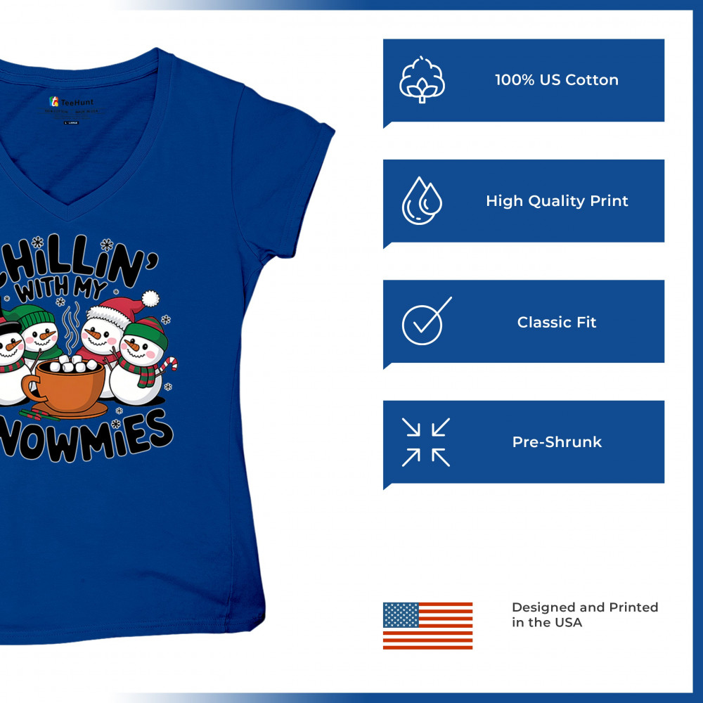 A cute and cheerful winter design showing happy snowmen sharing hot cocoa, perfect for Christmas gatherings, holiday events, seasonal photos, white-elephant gifting, festive family nights, winter celebrations, cozy weekend vibes, and fans of playful holiday humor. A fun graphic for anyone who loves bright and friendly Christmas styles.