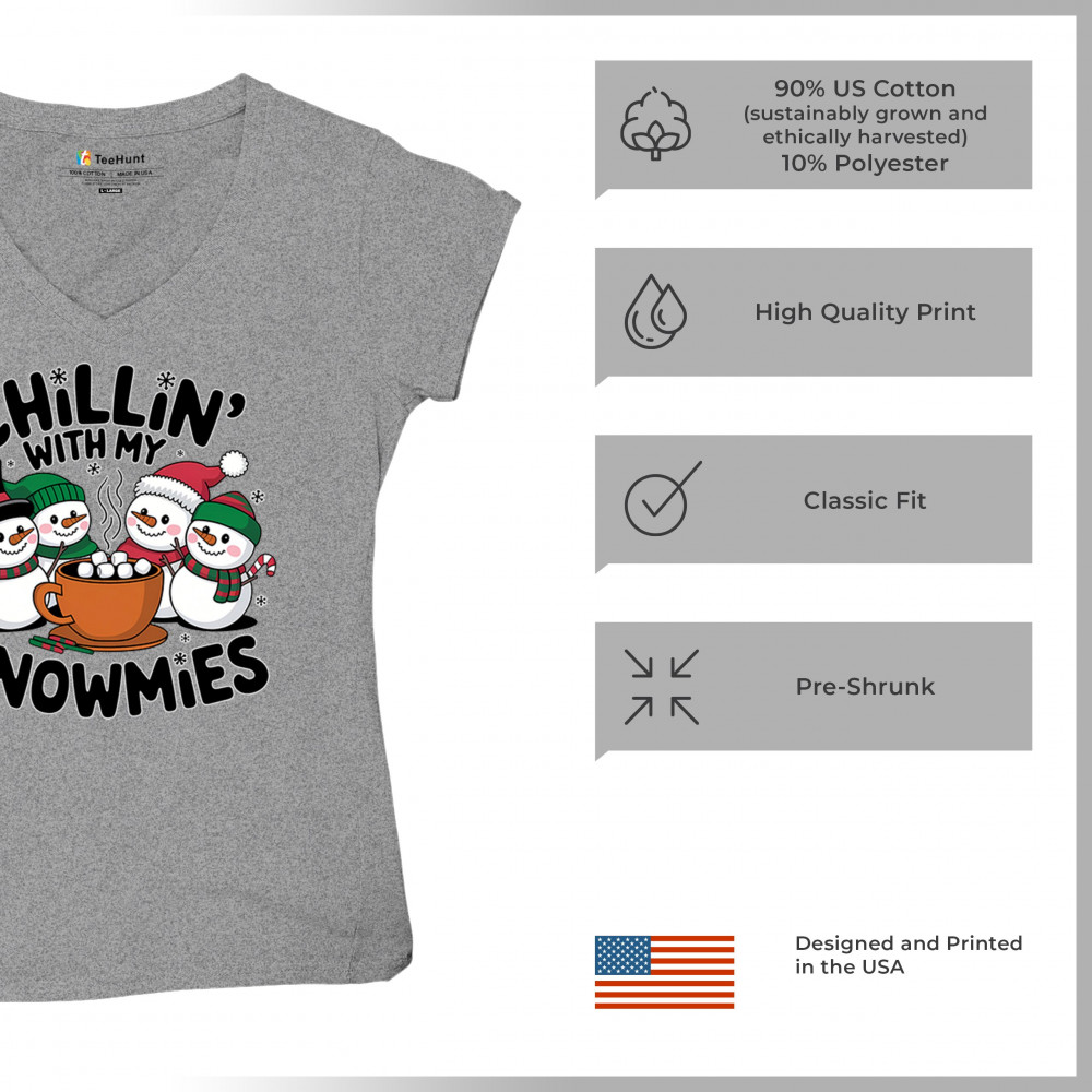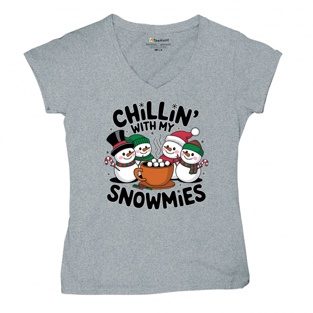 A cute and cheerful winter design showing happy snowmen sharing hot cocoa, perfect for Christmas gatherings, holiday events, seasonal photos, white-elephant gifting, festive family nights, winter celebrations, cozy weekend vibes, and fans of playful holiday humor. A fun graphic for anyone who loves bright and friendly Christmas styles.