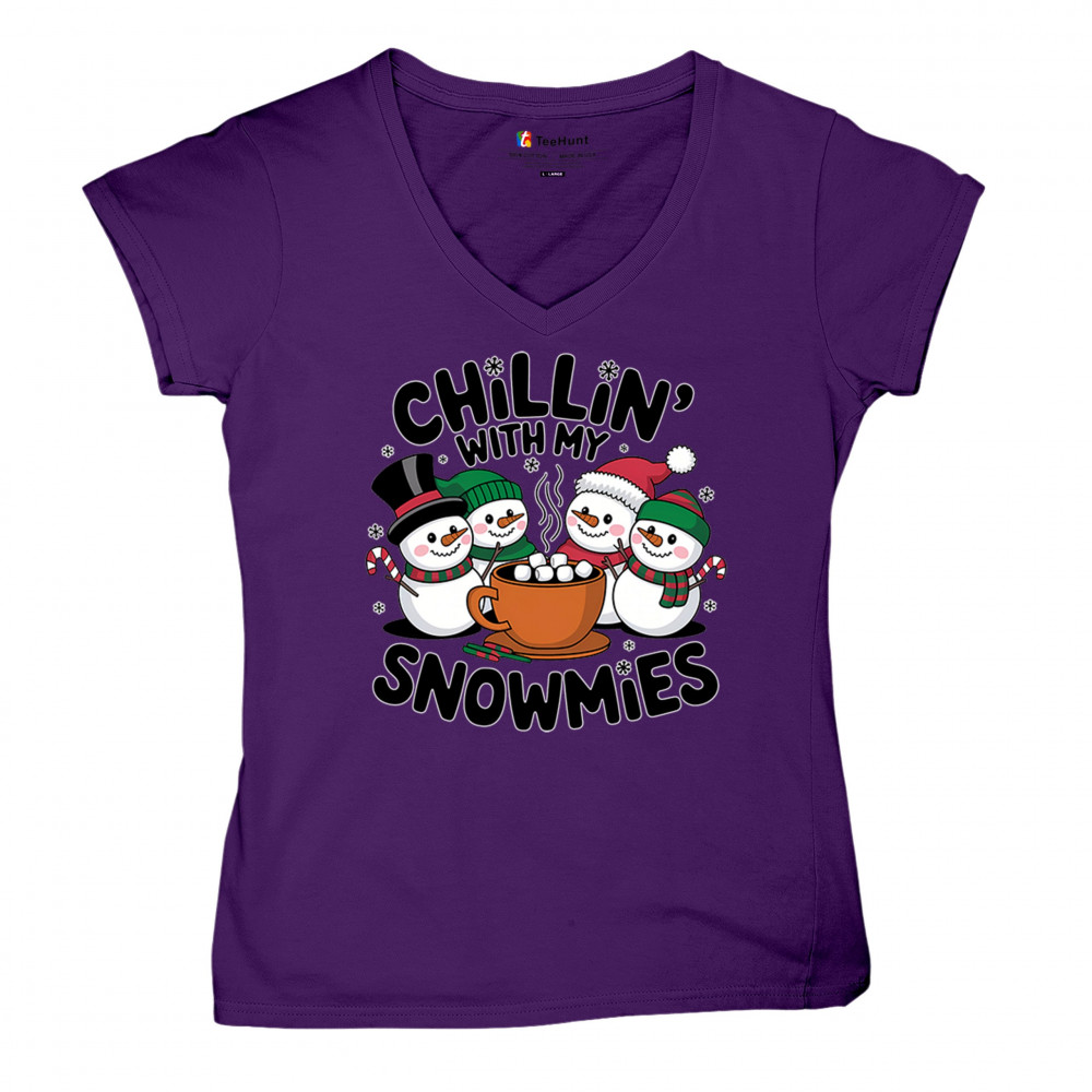A cute and cheerful winter design showing happy snowmen sharing hot cocoa, perfect for Christmas gatherings, holiday events, seasonal photos, white-elephant gifting, festive family nights, winter celebrations, cozy weekend vibes, and fans of playful holiday humor. A fun graphic for anyone who loves bright and friendly Christmas styles.
