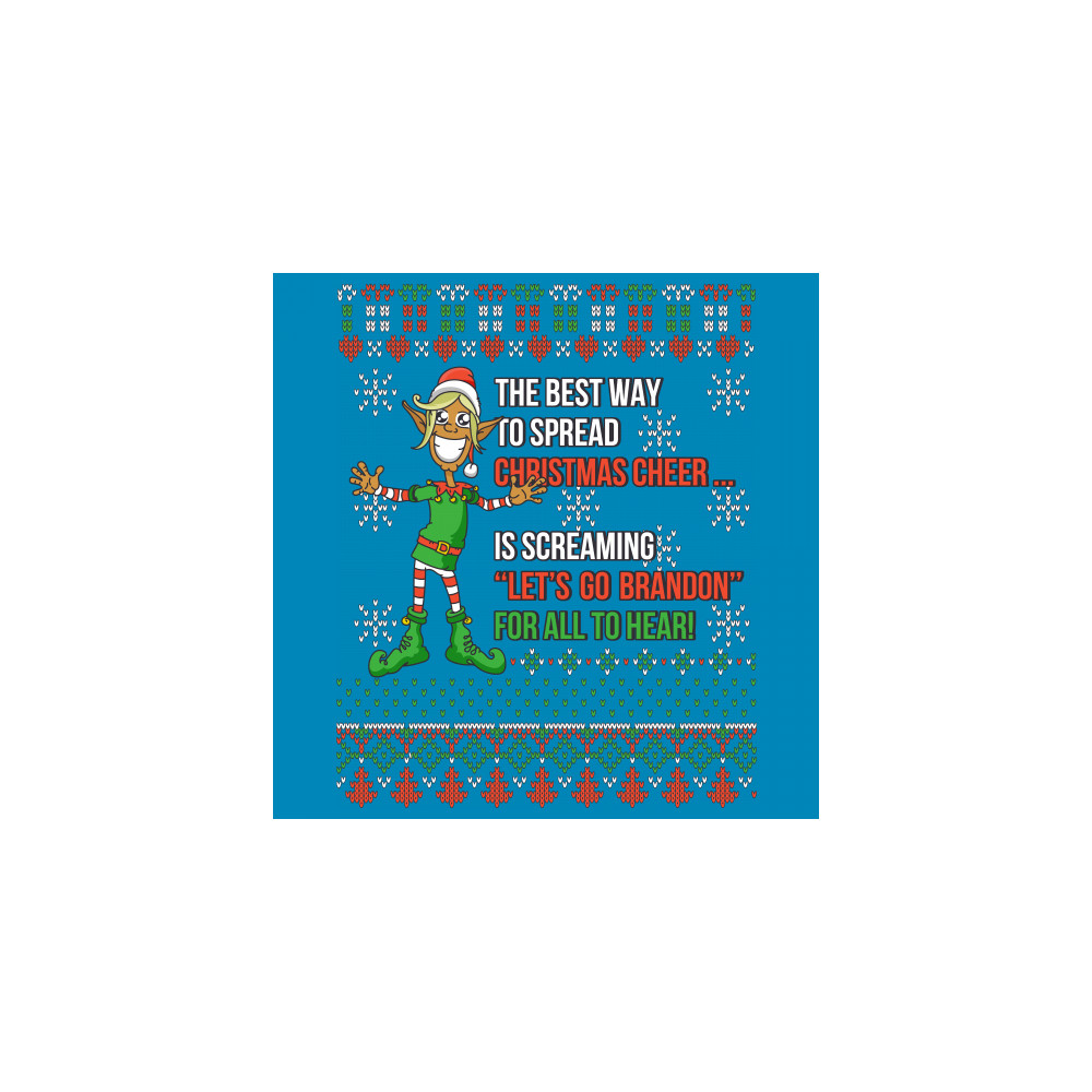 A funny print saying: "The Best Way to Spread Christmas Cheer Is Screaming Let's Go Brandon for All to Hear" and featuring a smiling elf. The print is decorated as a Christmas ugly Sweater. A great choice to wear for a Christmas or New Year's Eve party an