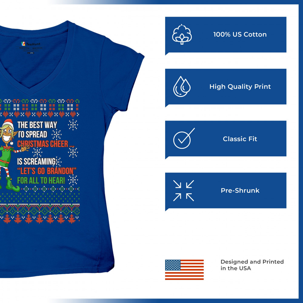 CHRISTMAS CHEER LET'S GO BRANDON women's v-neck t-shirt ugly sweater xmas tee royal blue