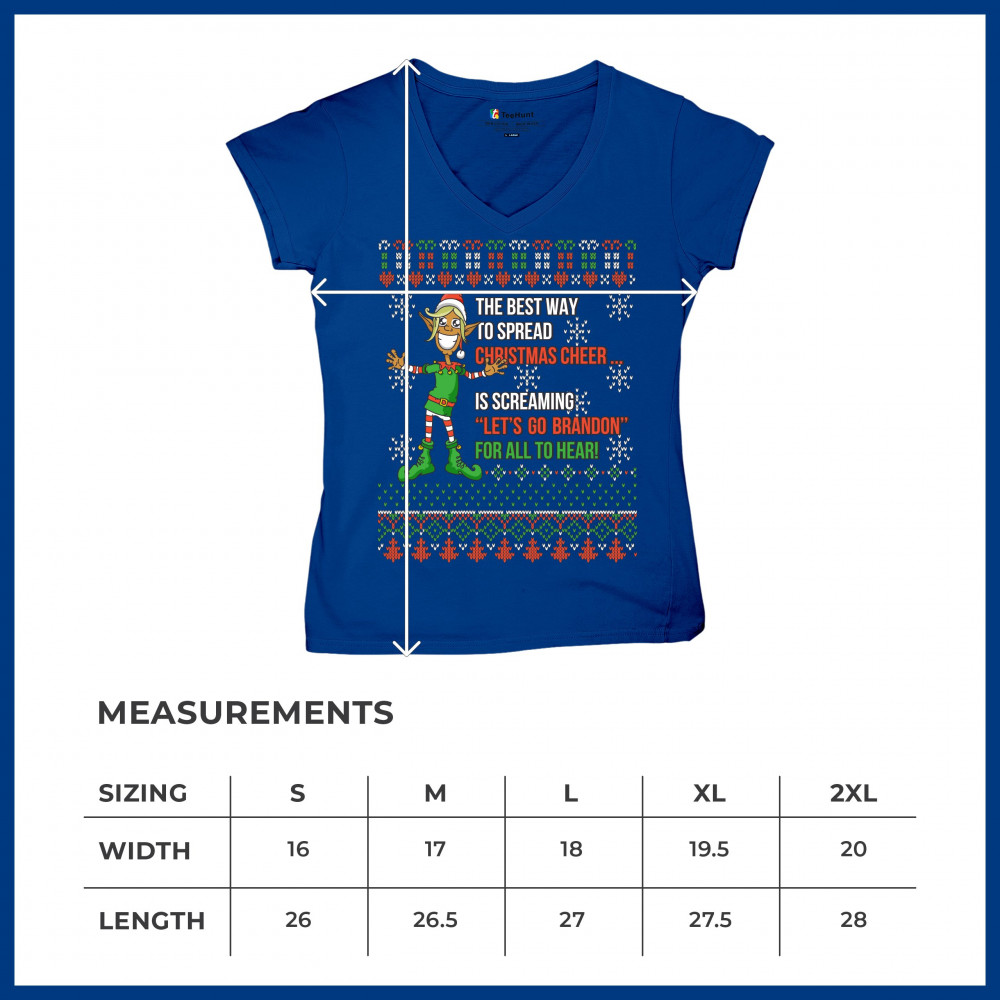 A funny print saying: "The Best Way to Spread Christmas Cheer Is Screaming Let's Go Brandon for All to Hear" and featuring a smiling elf. The print is decorated as a Christmas ugly Sweater. A great choice to wear for a Christmas or New Year's Eve party an