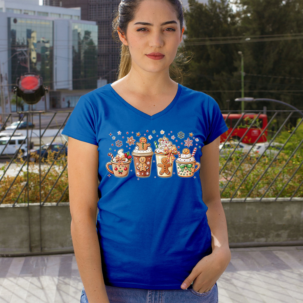 This cute Christmas drink design showcases gingerbread mugs, whipped cream, candy canes, sprinkles, and festive decorations for a warm winter aesthetic. Perfect for cocoa lovers, coffee fans, bakers, cozy holiday nights, gift exchanges, Christmas morning vibes, seasonal parties, and anyone who loves adorable dessert-inspired holiday art.