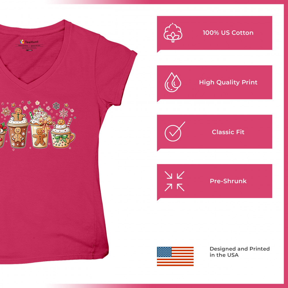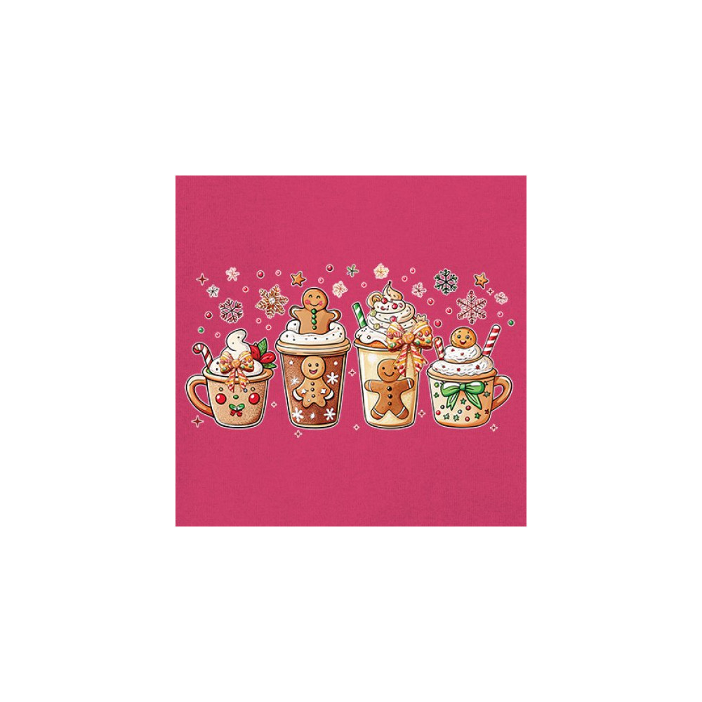This cute Christmas drink design showcases gingerbread mugs, whipped cream, candy canes, sprinkles, and festive decorations for a warm winter aesthetic. Perfect for cocoa lovers, coffee fans, bakers, cozy holiday nights, gift exchanges, Christmas morning vibes, seasonal parties, and anyone who loves adorable dessert-inspired holiday art.
