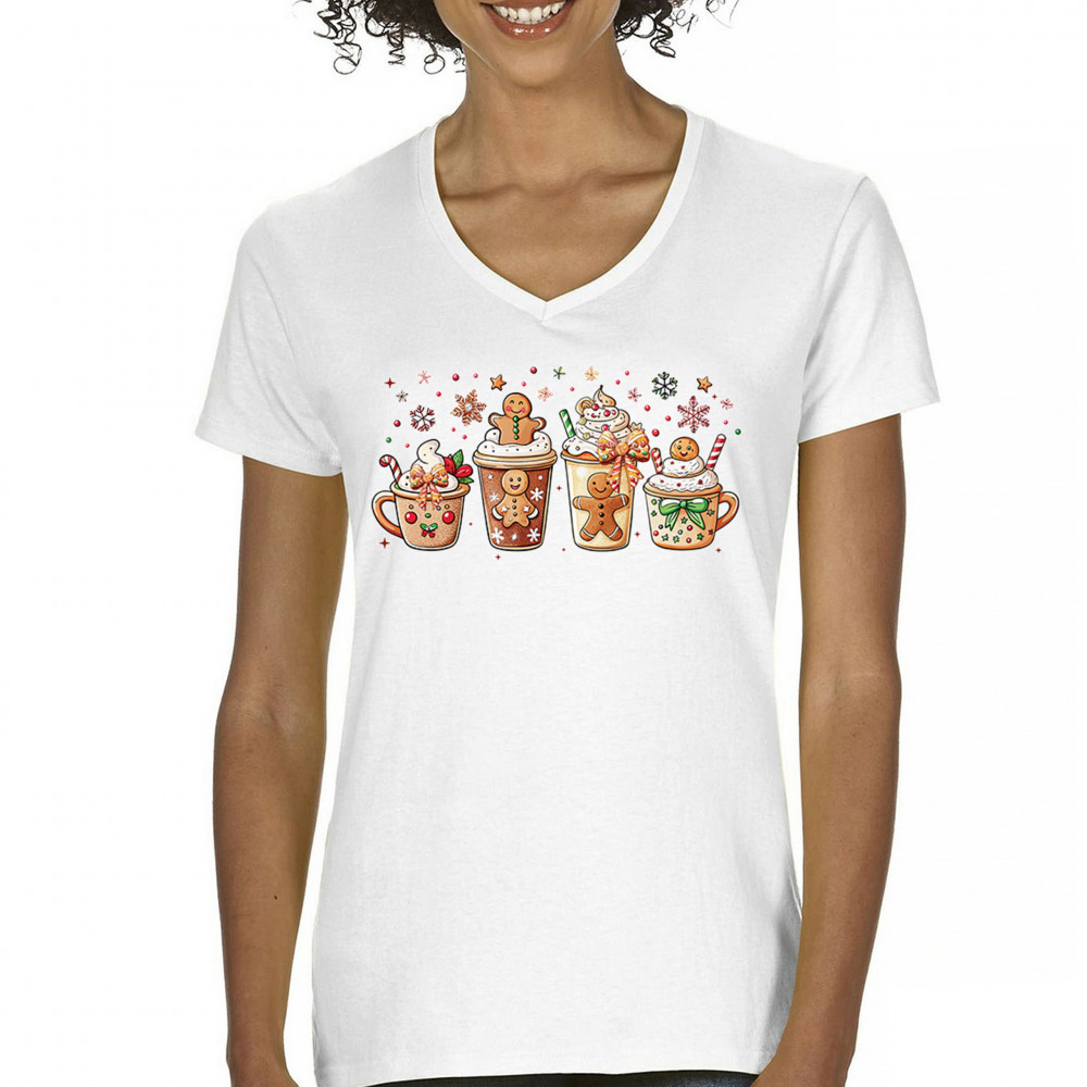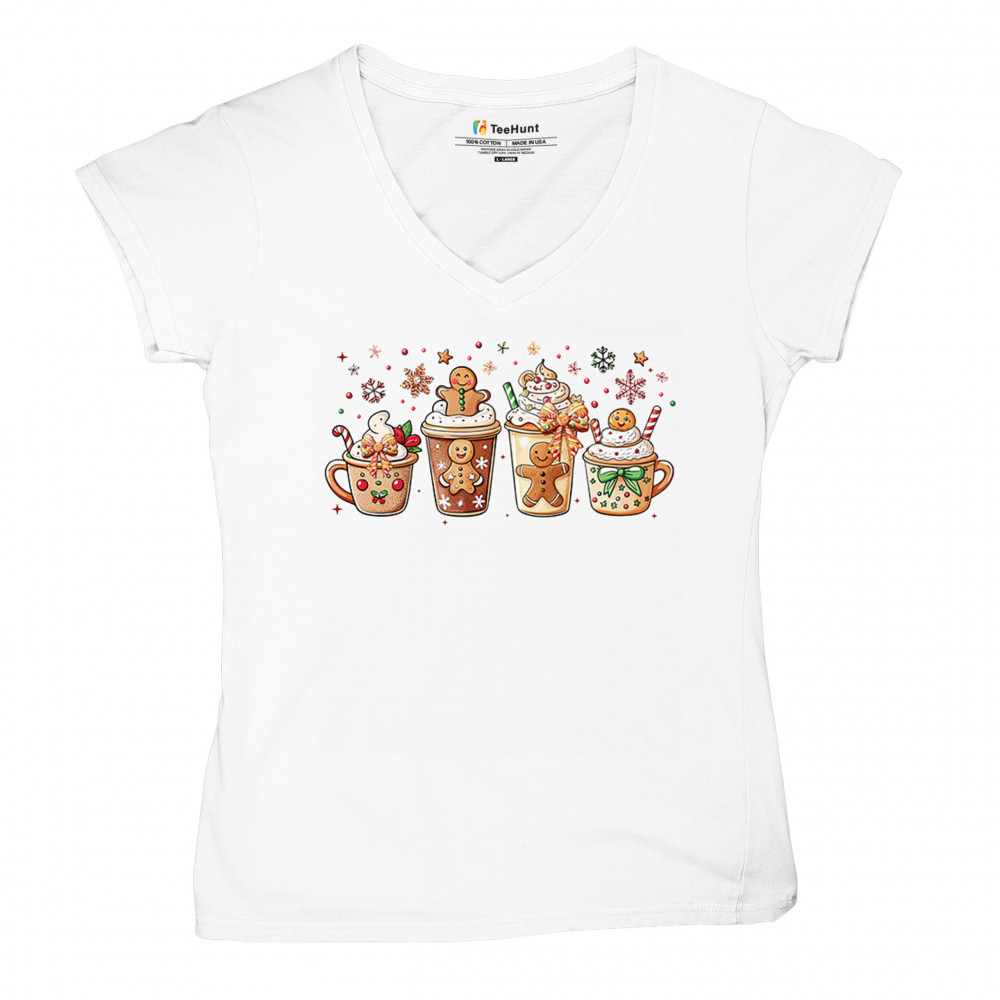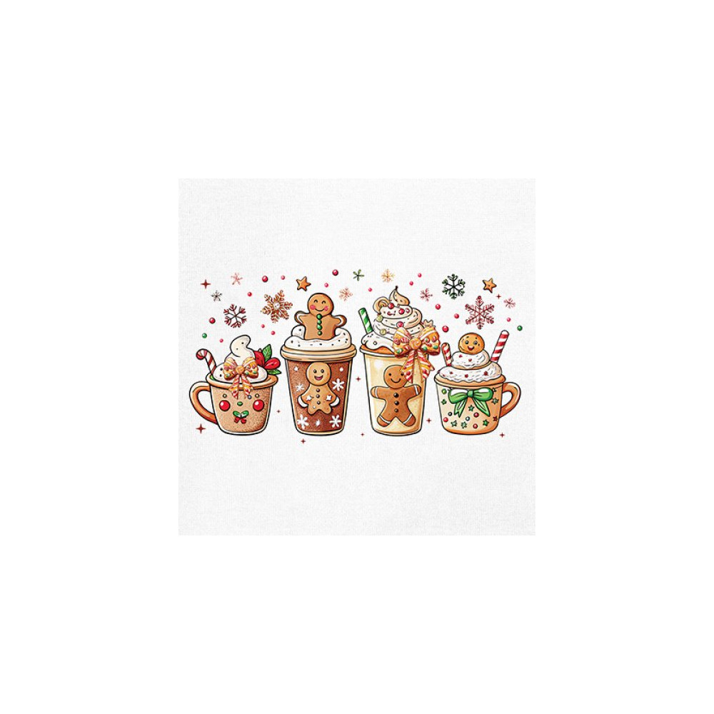 This cute Christmas drink design showcases gingerbread mugs, whipped cream, candy canes, sprinkles, and festive decorations for a warm winter aesthetic. Perfect for cocoa lovers, coffee fans, bakers, cozy holiday nights, gift exchanges, Christmas morning vibes, seasonal parties, and anyone who loves adorable dessert-inspired holiday art.