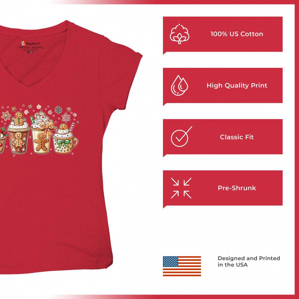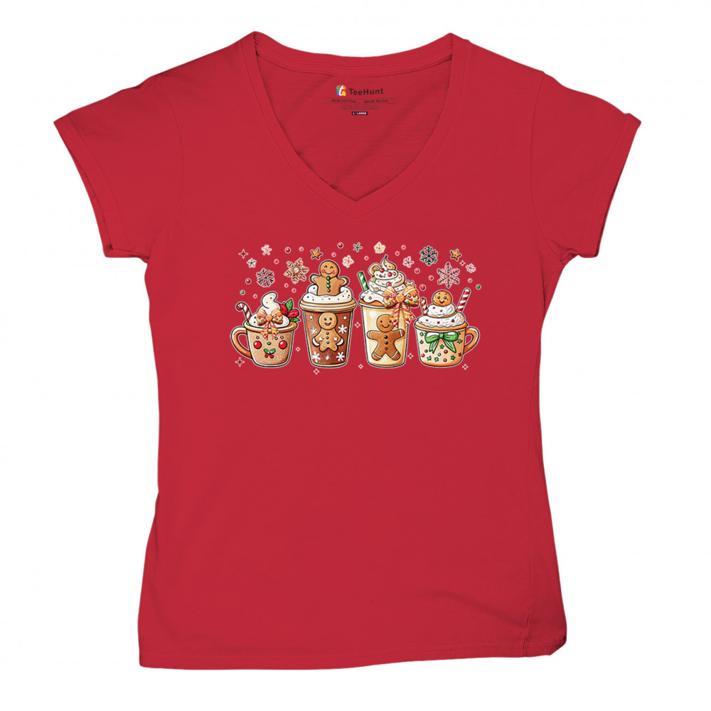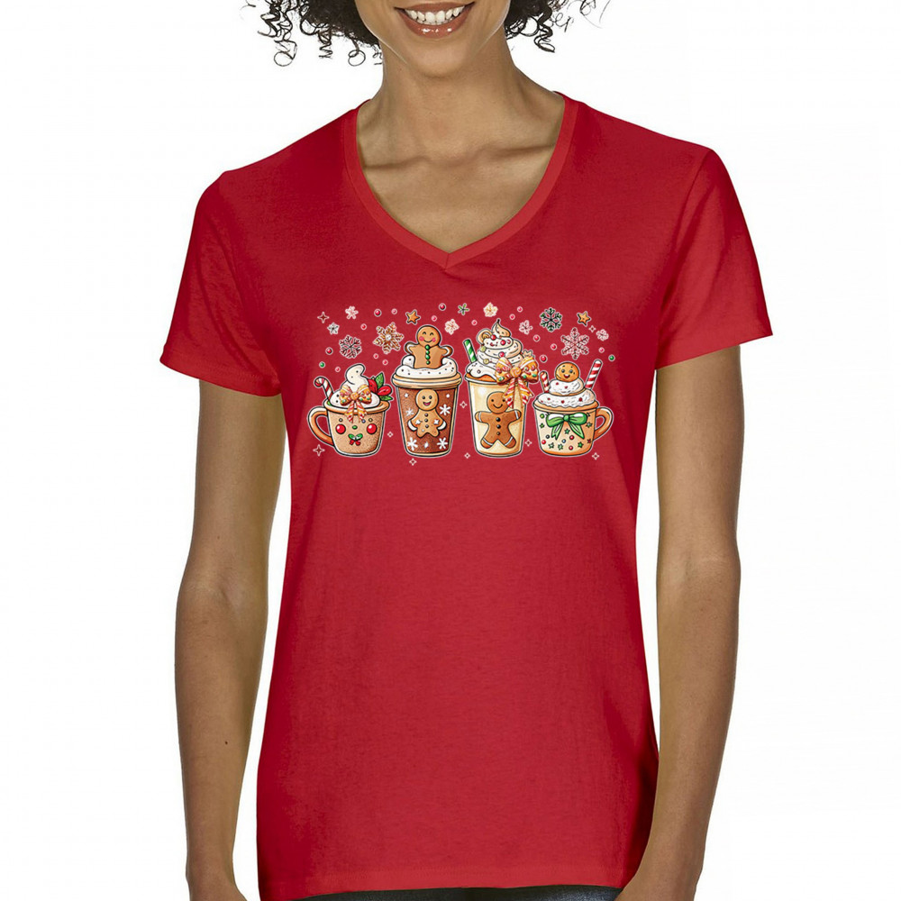 This cute Christmas drink design showcases gingerbread mugs, whipped cream, candy canes, sprinkles, and festive decorations for a warm winter aesthetic. Perfect for cocoa lovers, coffee fans, bakers, cozy holiday nights, gift exchanges, Christmas morning vibes, seasonal parties, and anyone who loves adorable dessert-inspired holiday art.