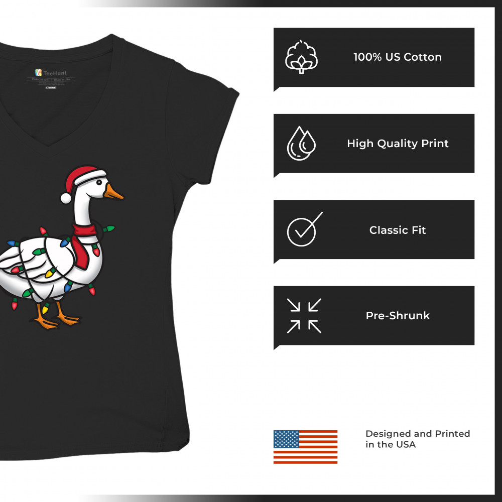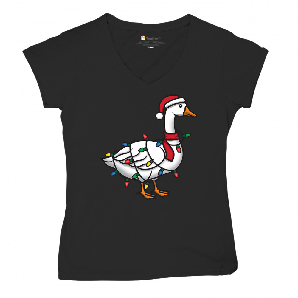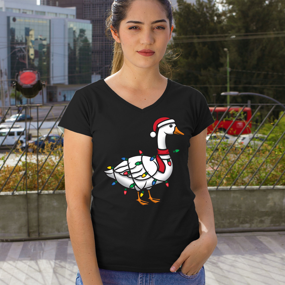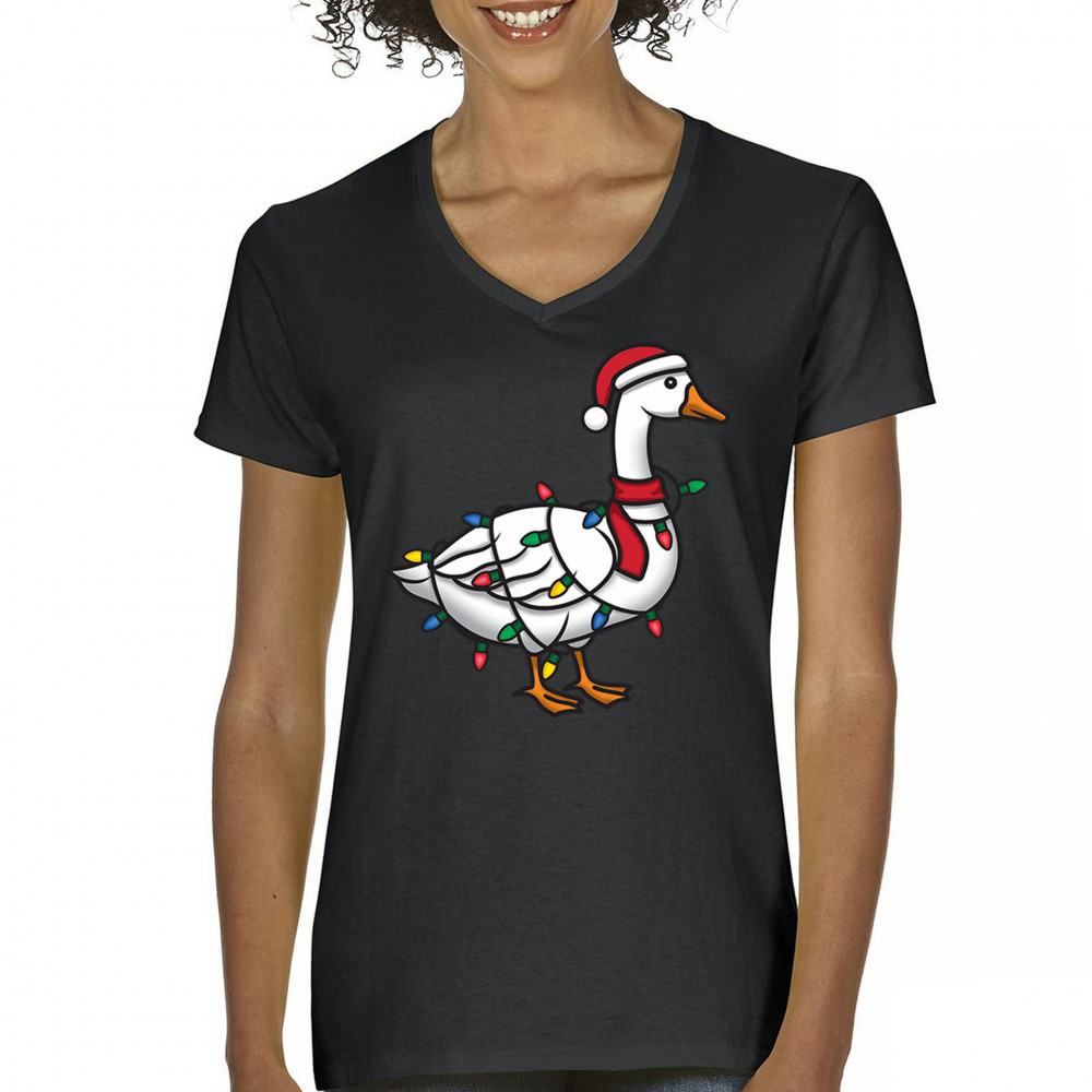 CHRISTMAS GOOSE women's v-neck t-shirt jolly xmas lights secret santa gift idea black