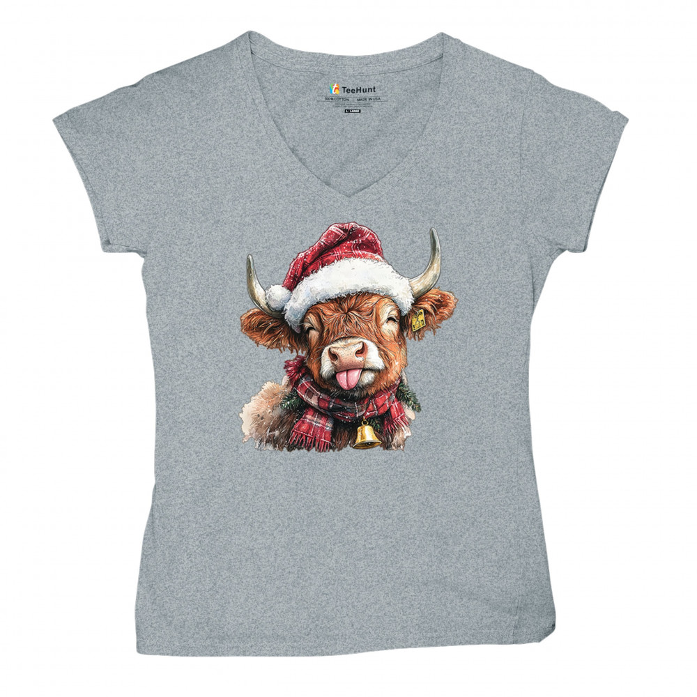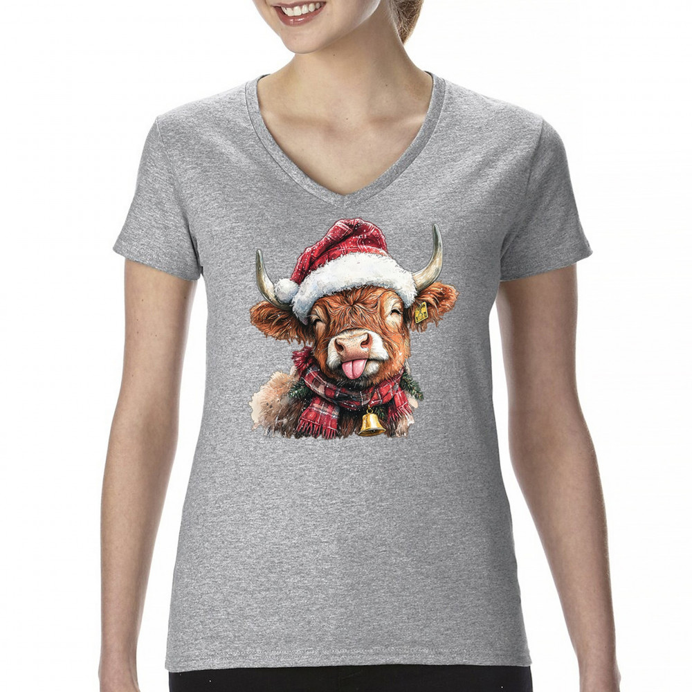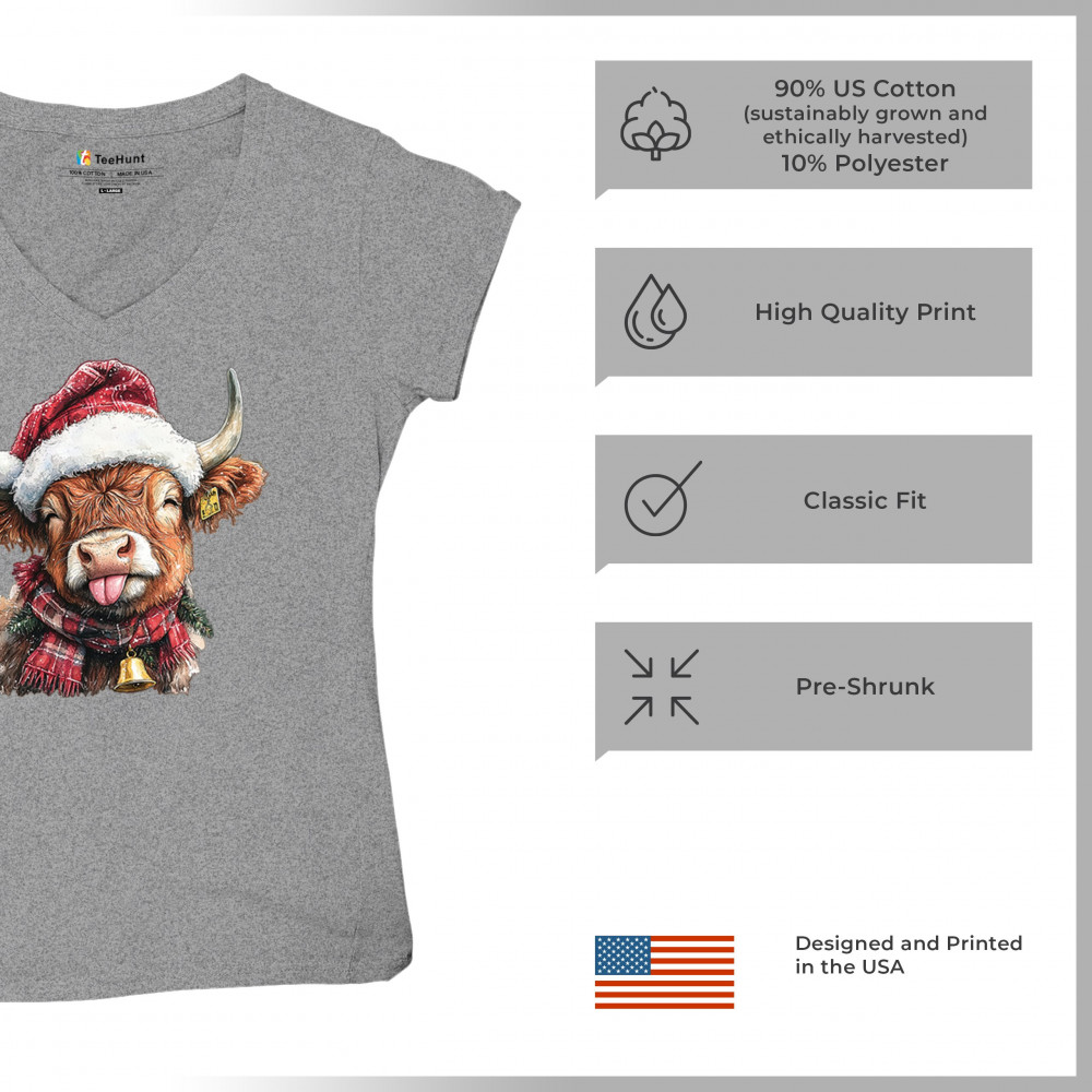 Christmas Highland Cow shirt – rustic holiday design with Santa hat cow, farmhouse holiday humor, country Christmas vibes, and festive livestock art.