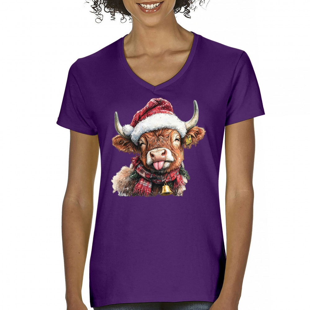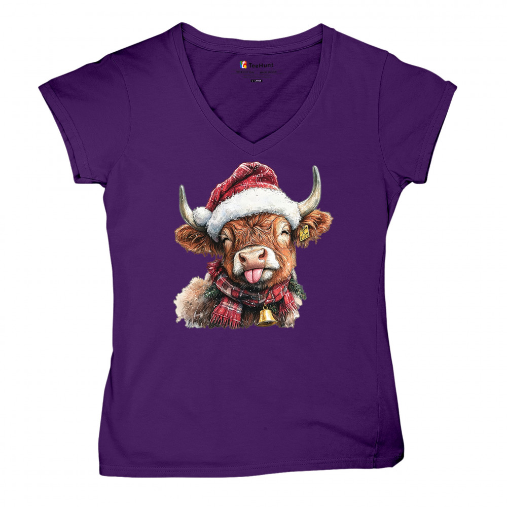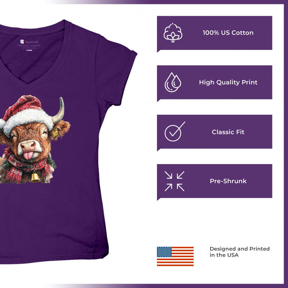 Christmas Highland Cow shirt – rustic holiday design with Santa hat cow, farmhouse holiday humor, country Christmas vibes, and festive livestock art.