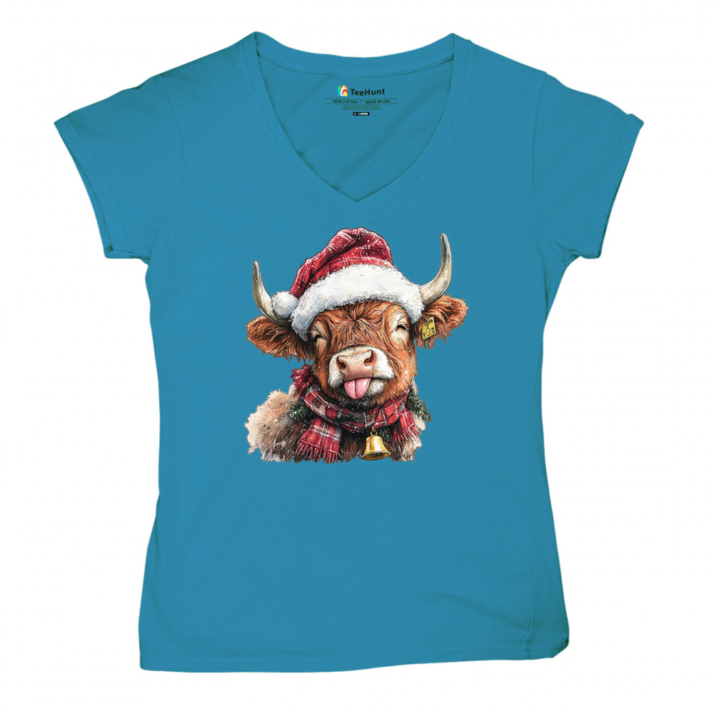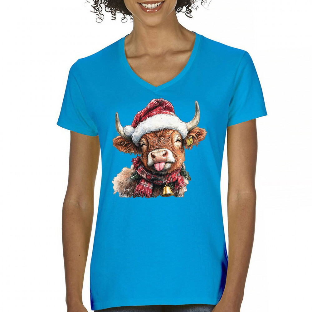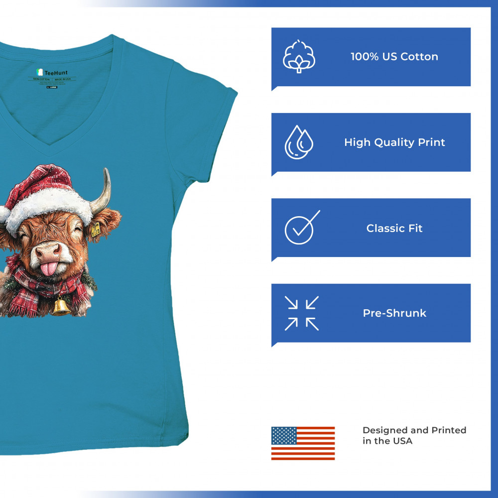 Christmas Highland Cow shirt – rustic holiday design with Santa hat cow, farmhouse holiday humor, country Christmas vibes, and festive livestock art.
