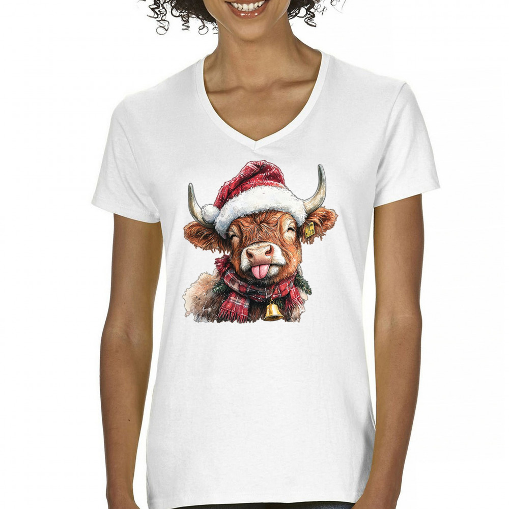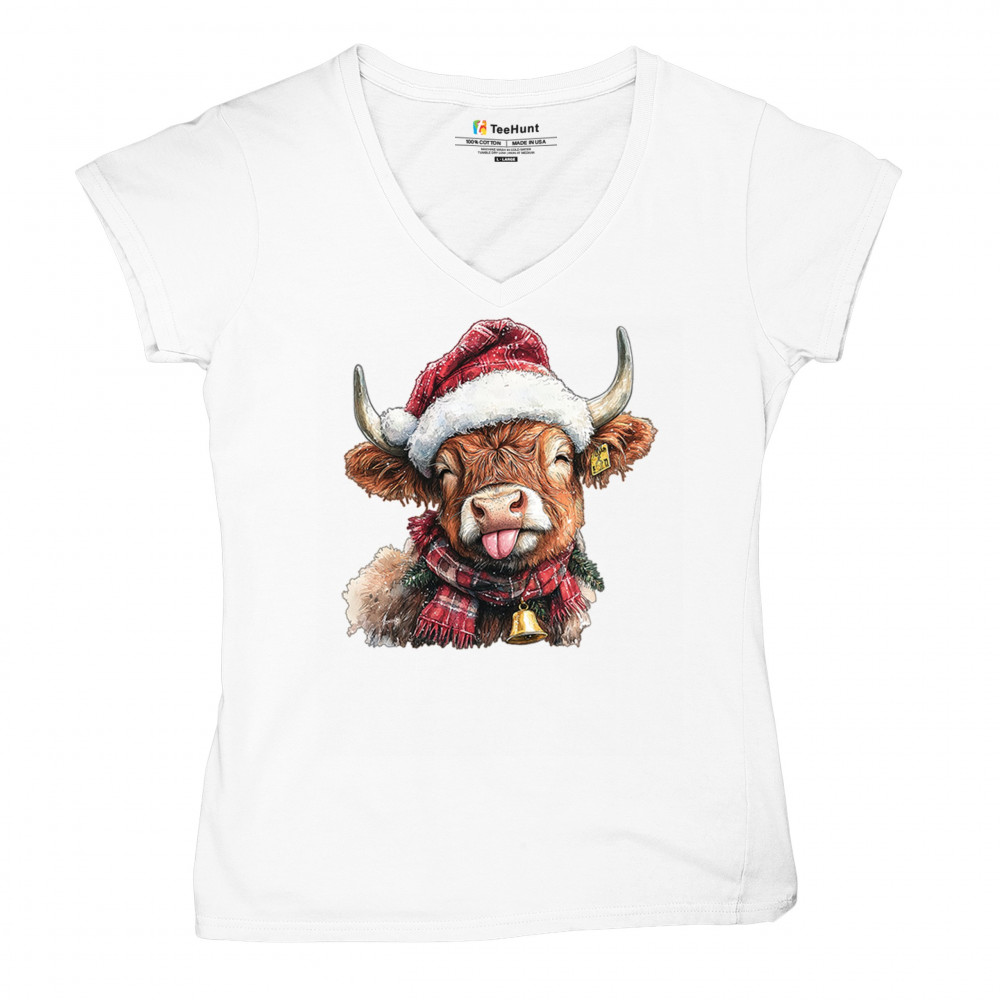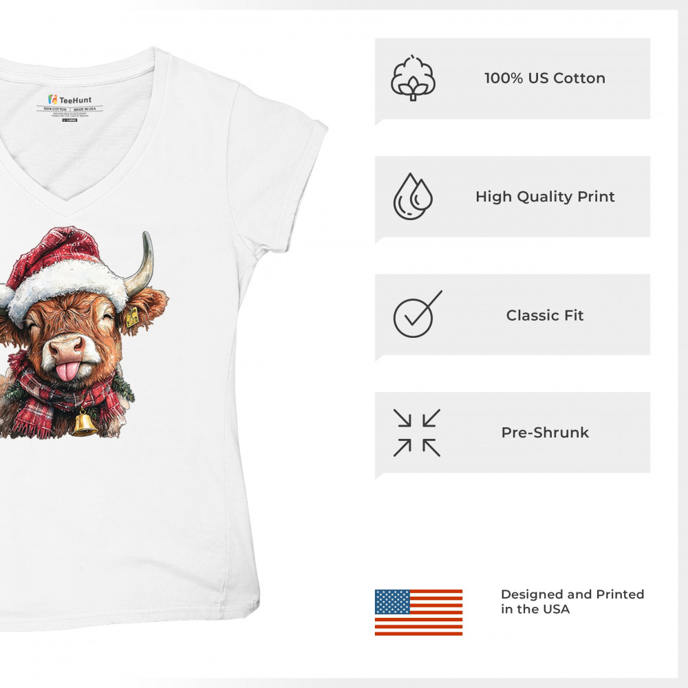 Christmas Highland Cow shirt – rustic holiday design with Santa hat cow, farmhouse holiday humor, country Christmas vibes, and festive livestock art.