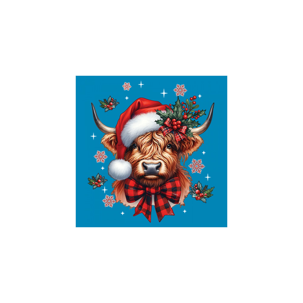 This adorable Highland cow Christmas design blends farmhouse charm, rustic holiday style, and classic winter décor. With a Santa hat, plaid bow, holly, and snowflakes, it delivers warm festive energy that fits perfectly with country décor, woodland themes, cozy farm aesthetics, holiday gifting, and seasonal celebrations. Ideal for fans of cute animals and cheerful Christmas graphics.c