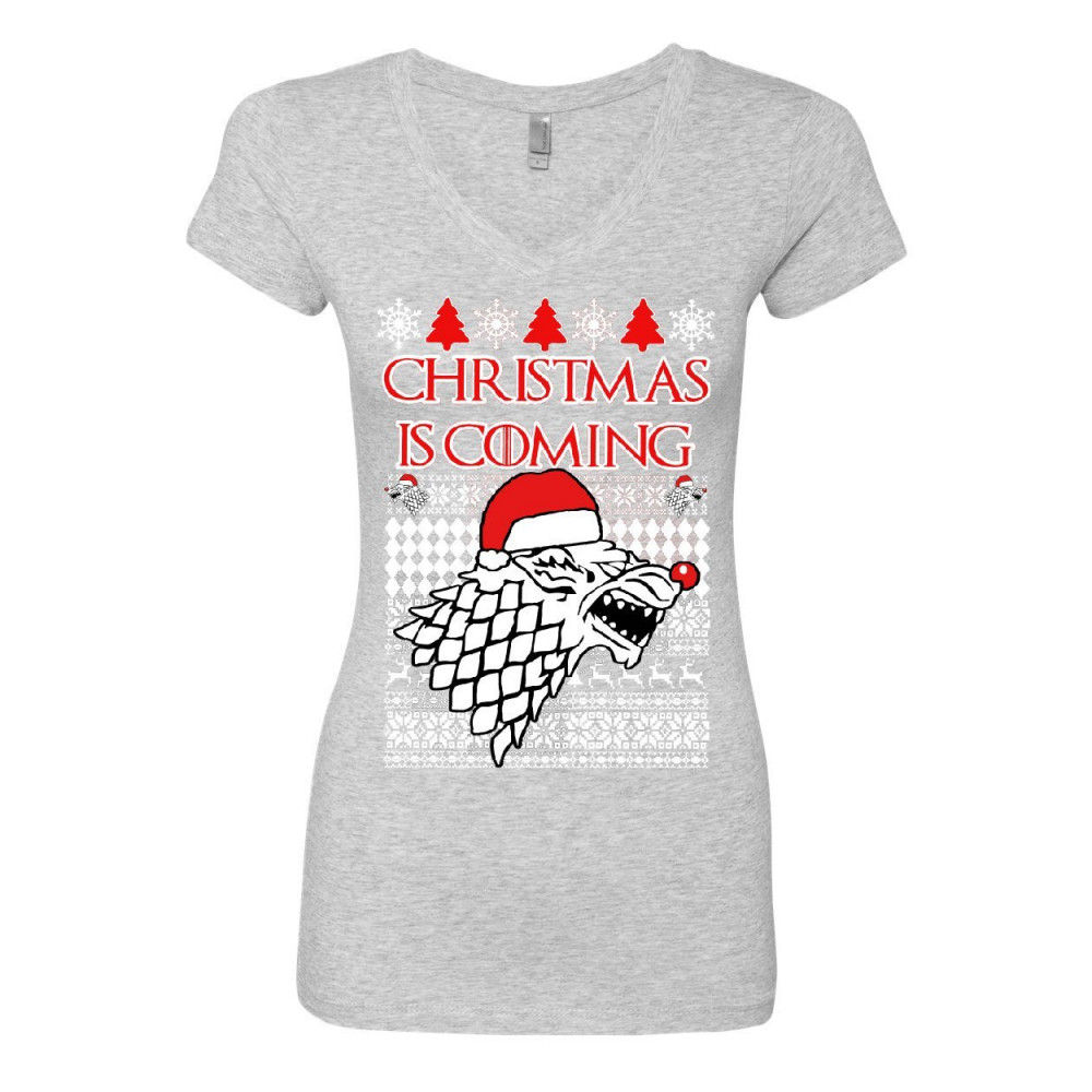 CHRISTMAS IS COMING DIREWOLF women's v-neck tee got parody ugly sweatshirt gray