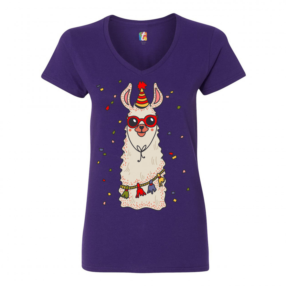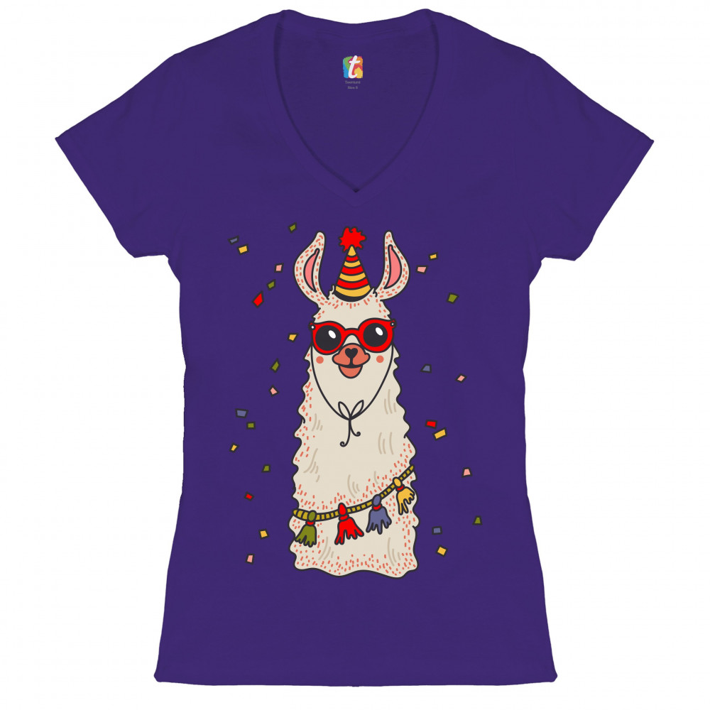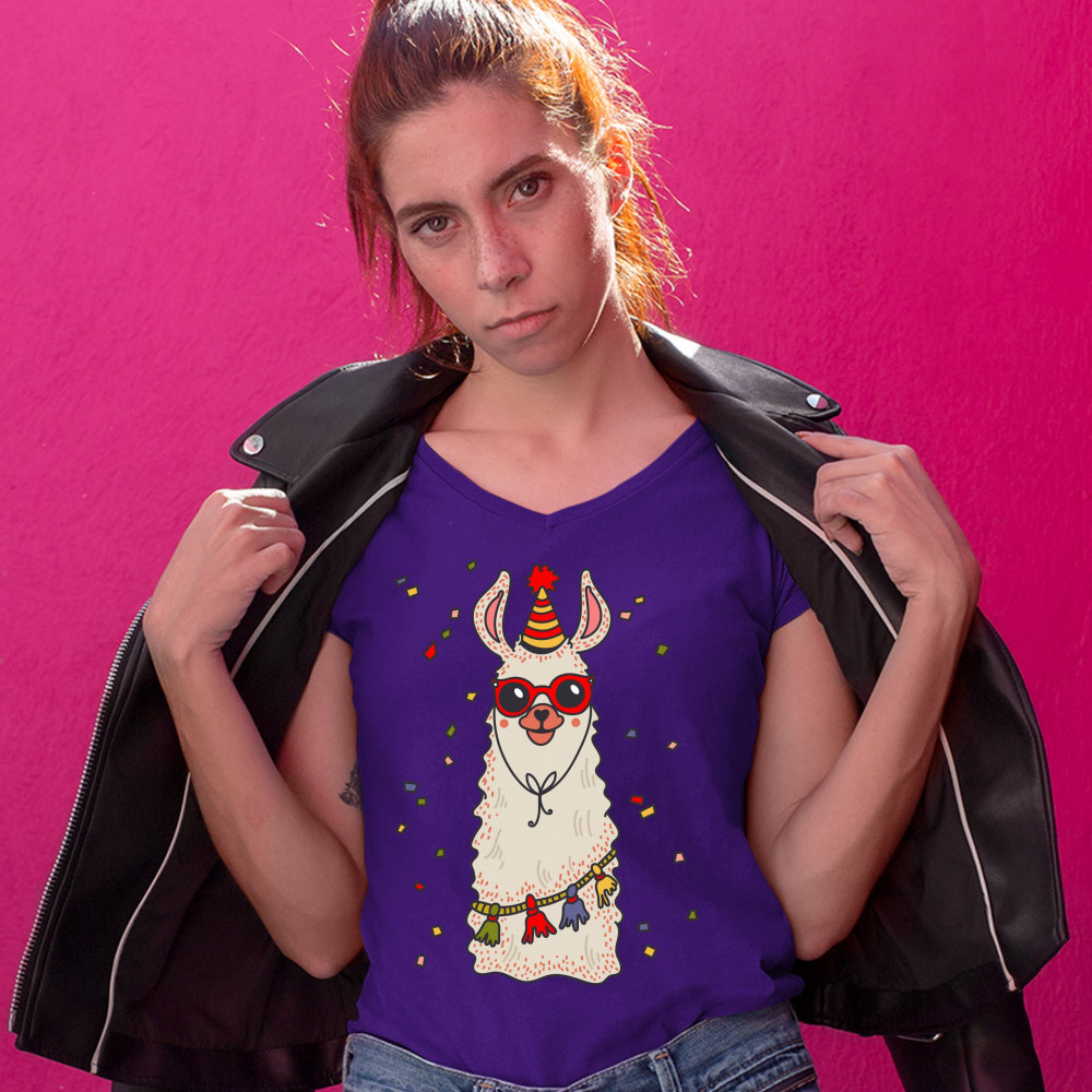 CHRISTMAS LLAMA women's v-neck t-shirt merry and bright let it snow funny tee purple