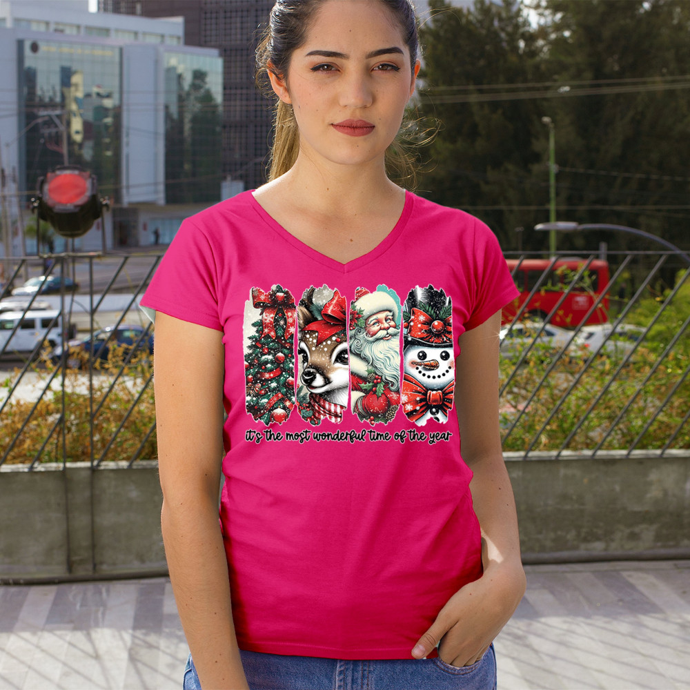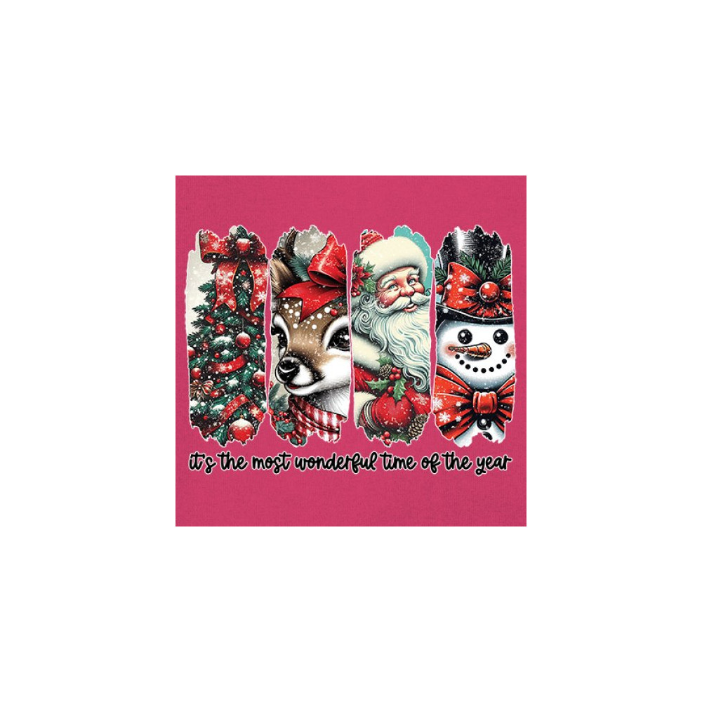 This Christmas design blends a decorated tree, sweet reindeer, vintage Santa, and a bright snowman for a classic seasonal look. Ideal for holiday lovers, winter gatherings, festive parties, gift exchanges, Christmas morning, and anyone who enjoys cheerful, nostalgic holiday art. A warm, eye-catching design that brings out the magic of the season.