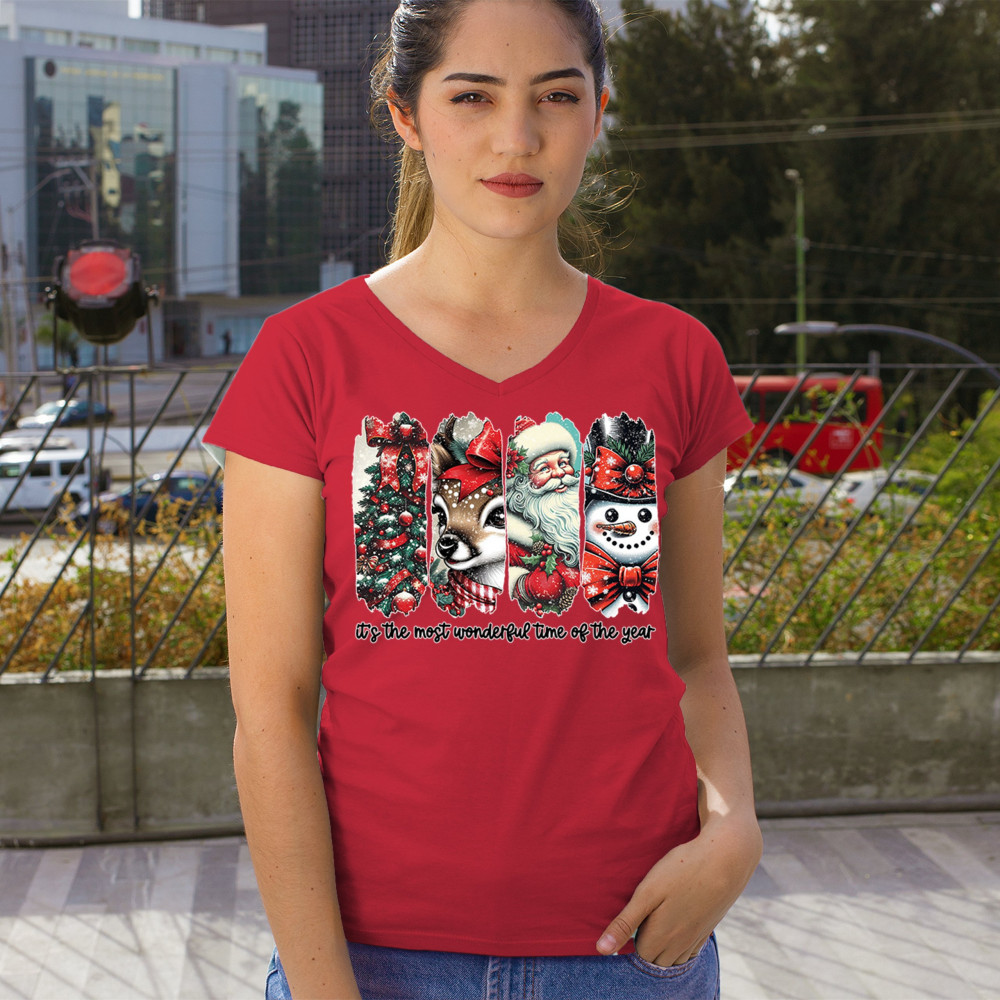 This Christmas design blends a decorated tree, sweet reindeer, vintage Santa, and a bright snowman for a classic seasonal look. Ideal for holiday lovers, winter gatherings, festive parties, gift exchanges, Christmas morning, and anyone who enjoys cheerful, nostalgic holiday art. A warm, eye-catching design that brings out the magic of the season.
