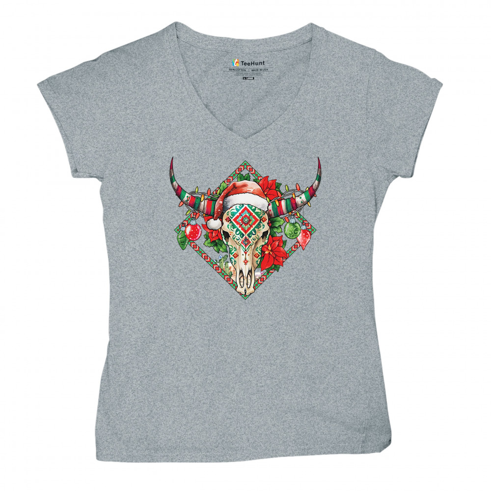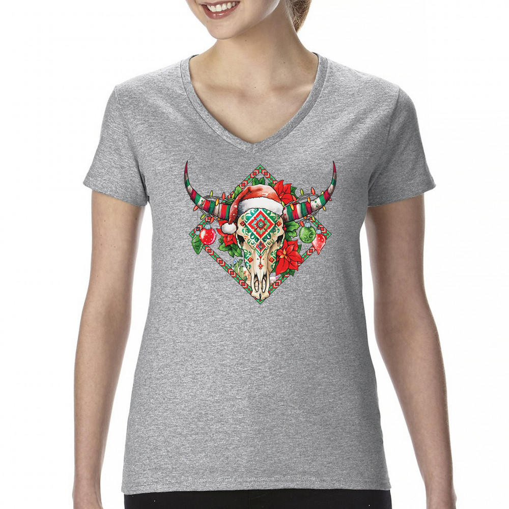 Blend Southwestern charm with holiday cheer! This vibrant skull design with poinsettias and ornaments is perfect for festive parties and unique gifts!