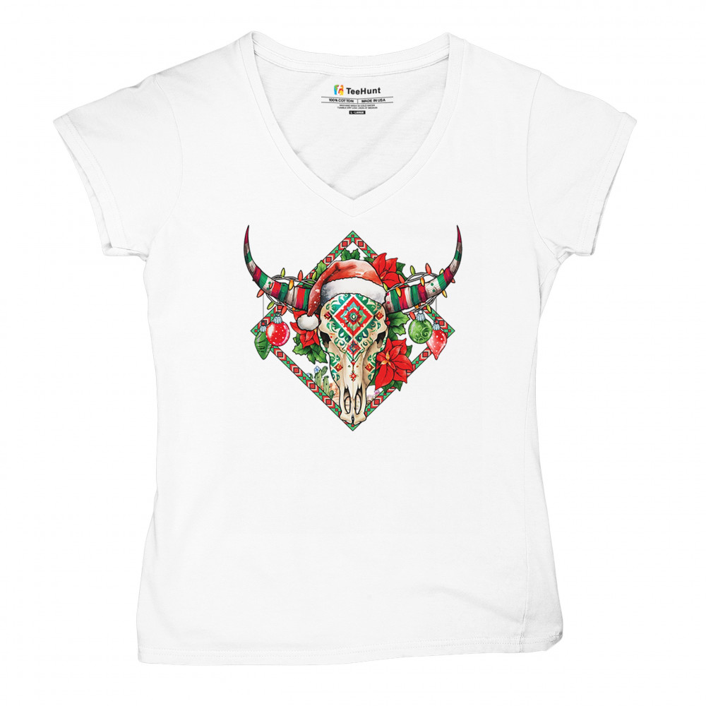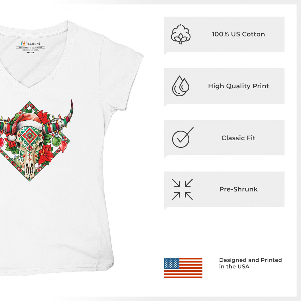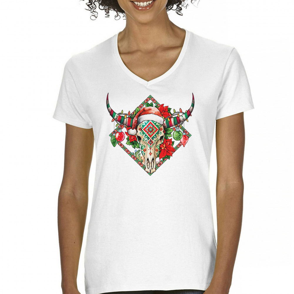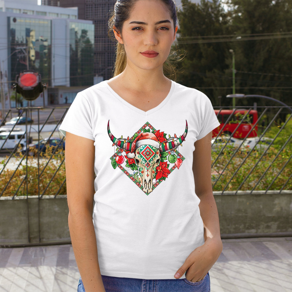 Blend Southwestern charm with holiday cheer! This vibrant skull design with poinsettias and ornaments is perfect for festive parties and unique gifts!