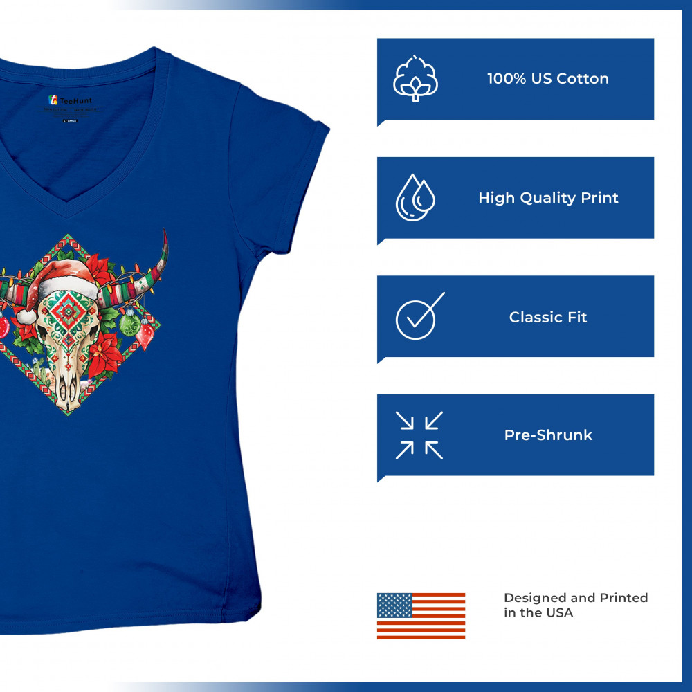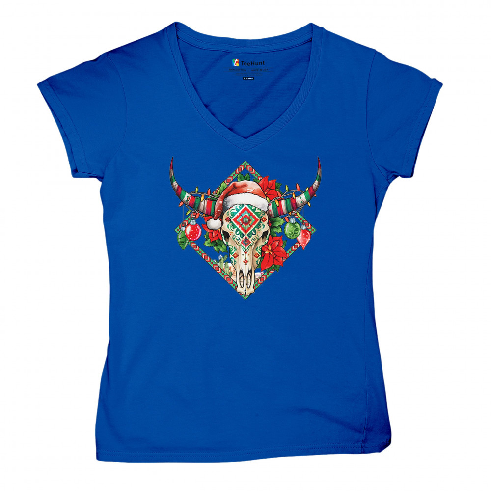 Blend Southwestern charm with holiday cheer! This vibrant skull design with poinsettias and ornaments is perfect for festive parties and unique gifts!