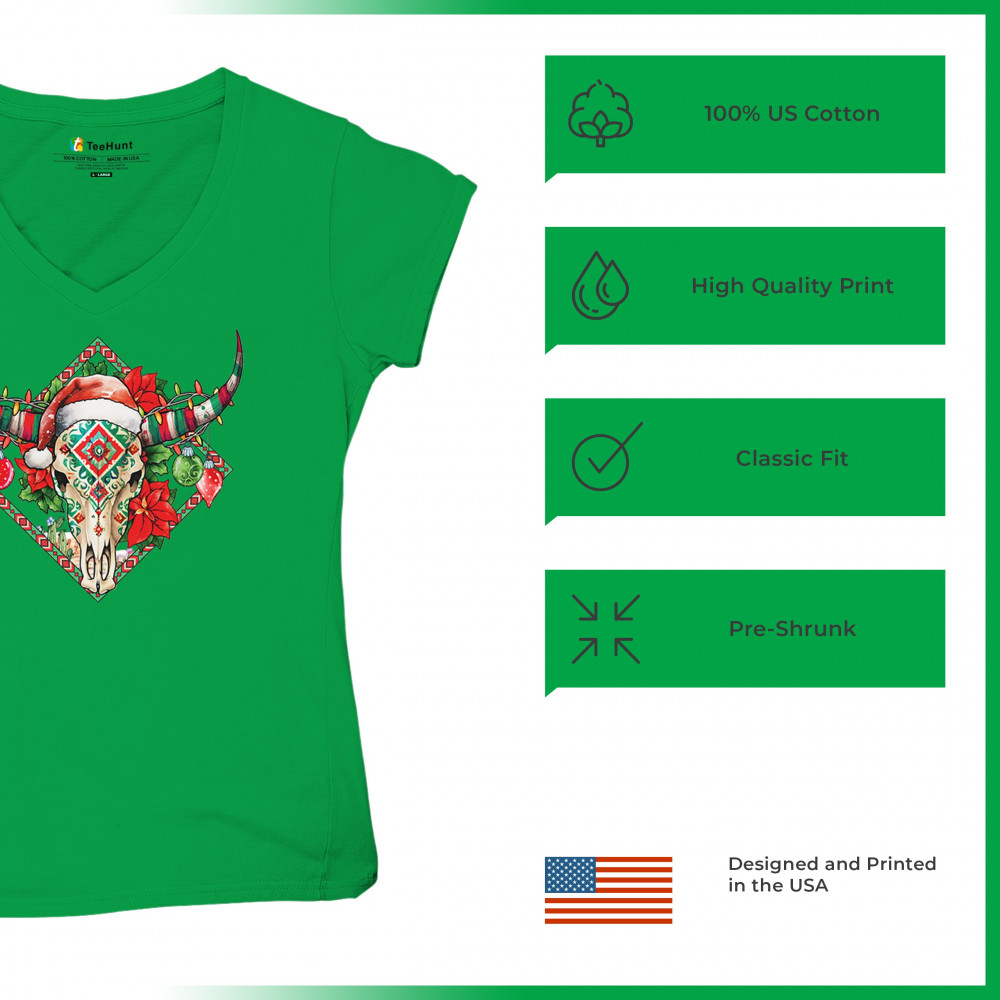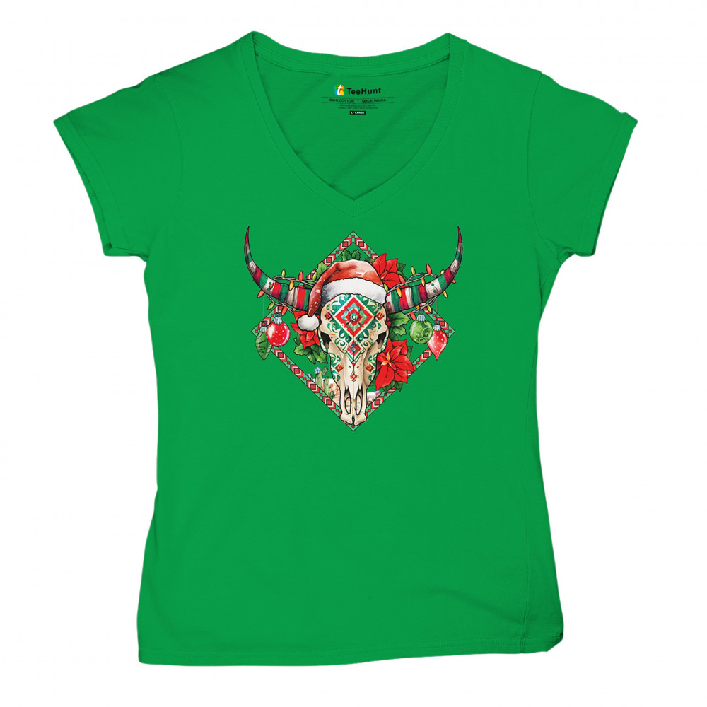 Blend Southwestern charm with holiday cheer! This vibrant skull design with poinsettias and ornaments is perfect for festive parties and unique gifts!