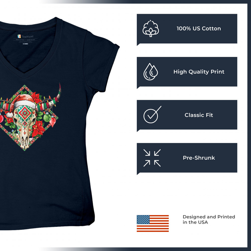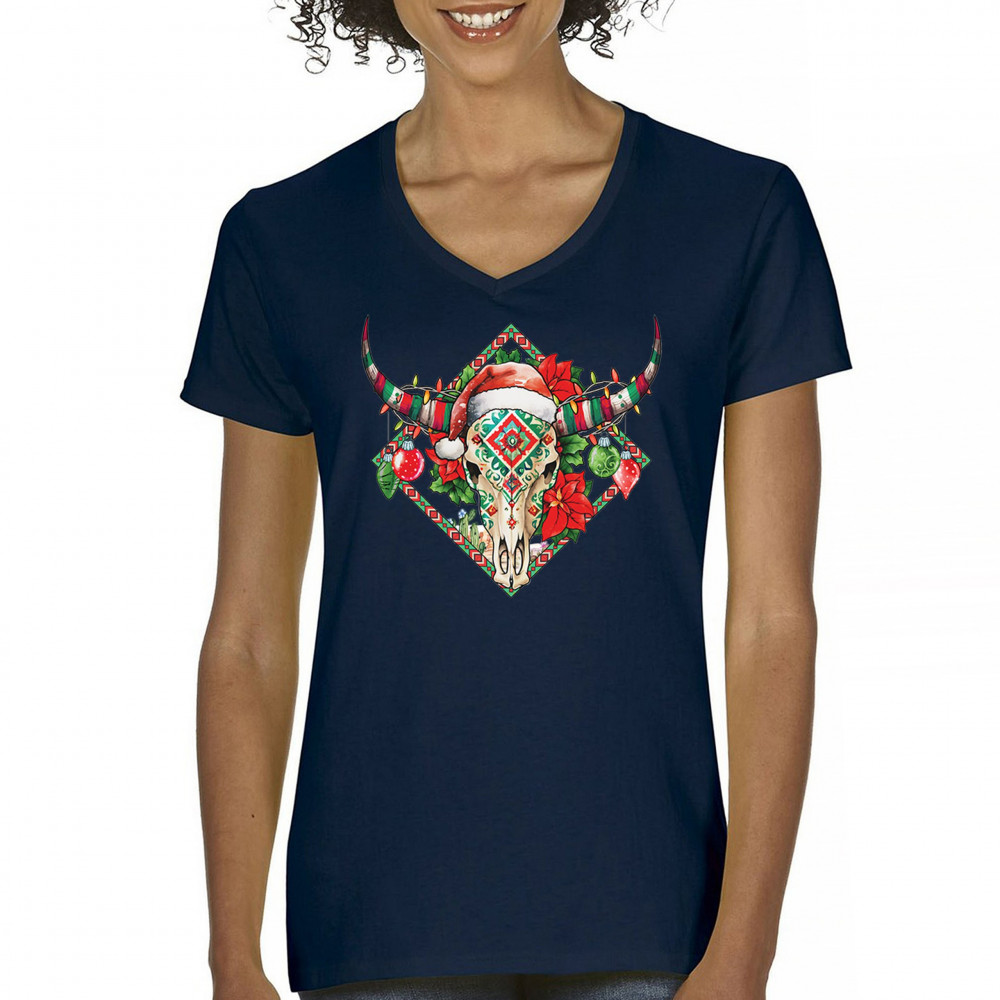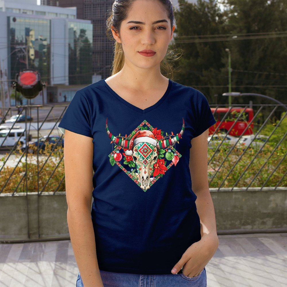 Blend Southwestern charm with holiday cheer! This vibrant skull design with poinsettias and ornaments is perfect for festive parties and unique gifts!
