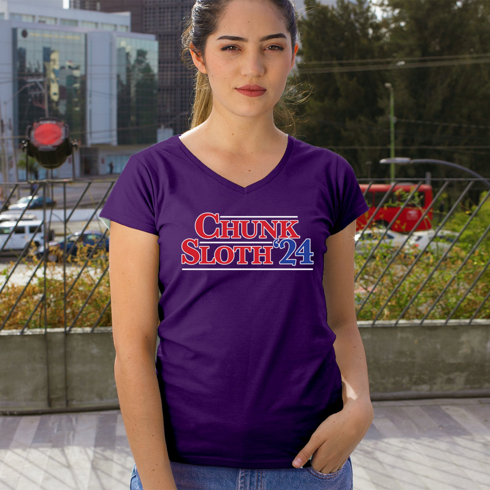 Celebrate 80s nostalgia and political humor with our Chunk and Sloth '24 design. Perfect for casual wear, movie nights, and themed parties. Durable and stylish.