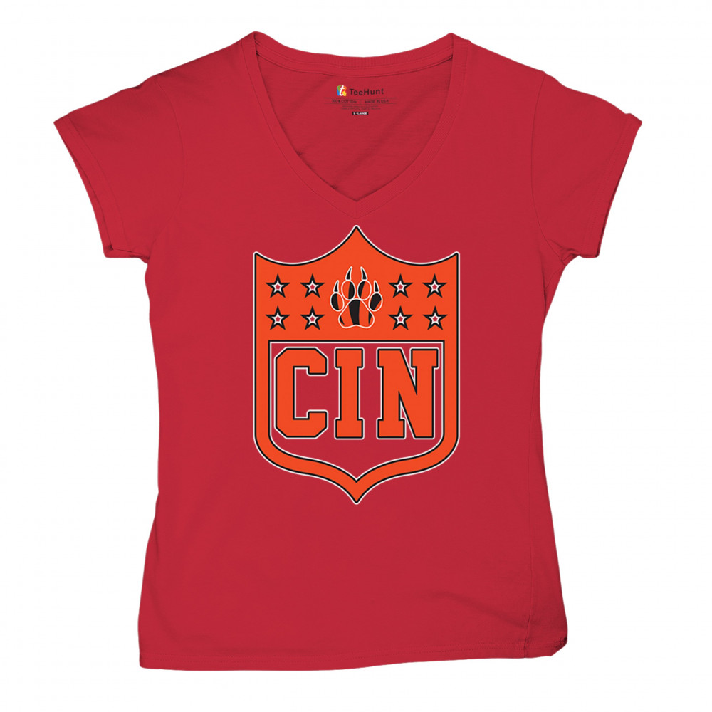 Bold CIN paw shield for Cincinnati football fans. Retro crest style, underdog spirit, and vintage game day gear for true Cincinnati grit.