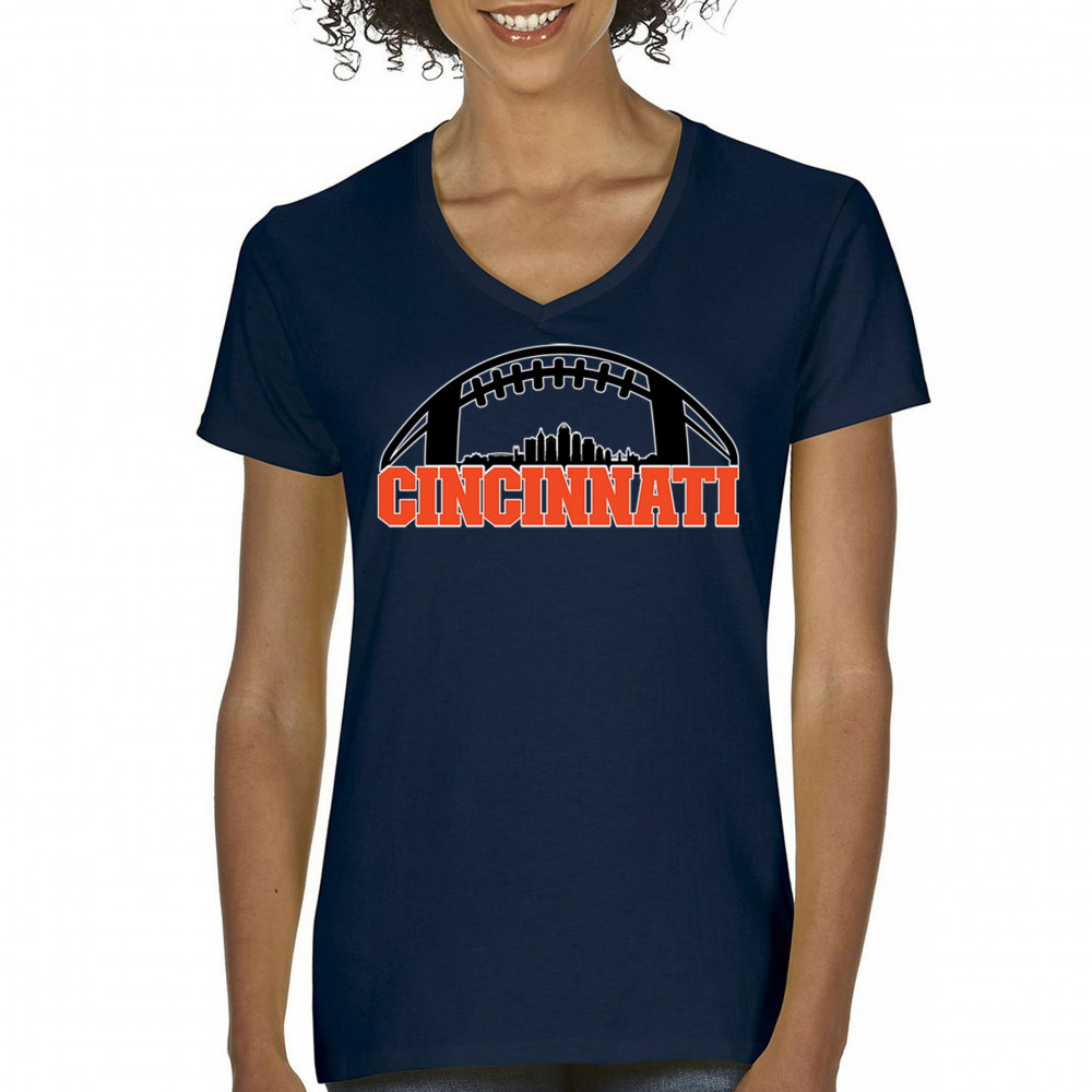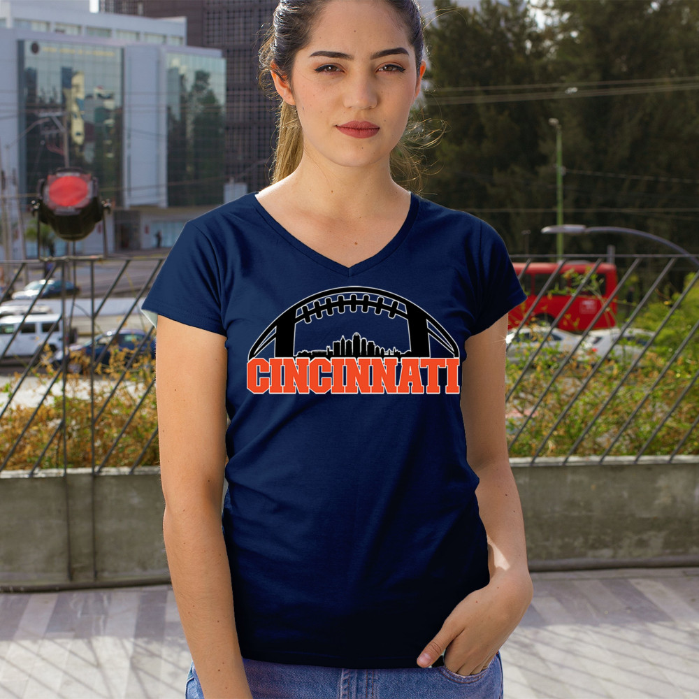 Celebrate Cincinnati and football with this bold skyline design under a football arch. Perfect for fans, tailgates, and game days!