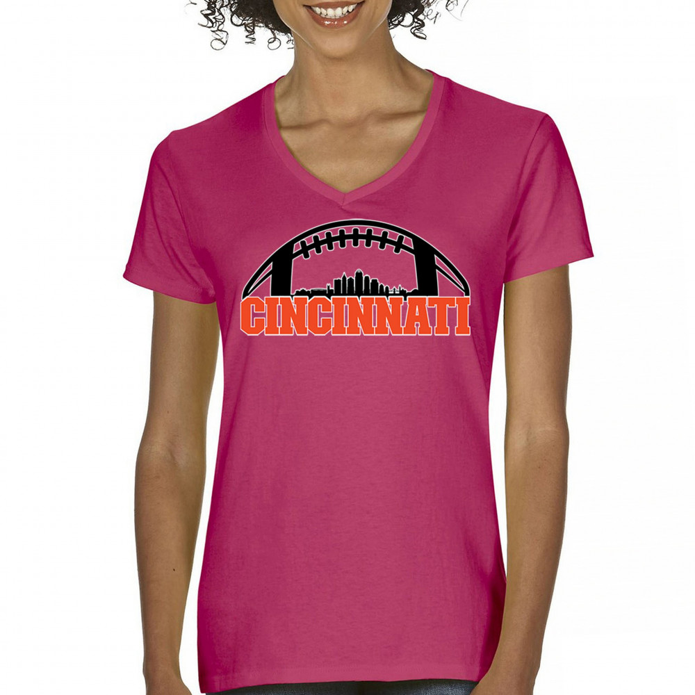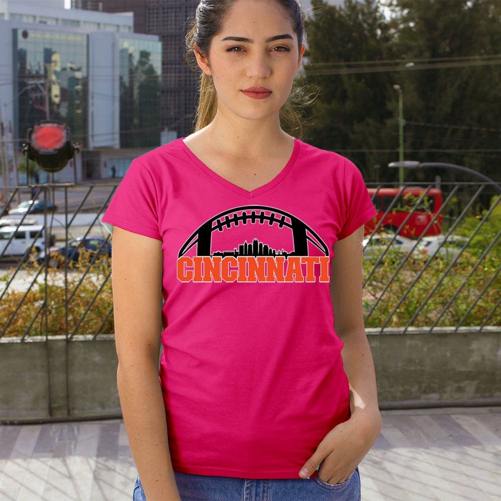 Celebrate Cincinnati and football with this bold skyline design under a football arch. Perfect for fans, tailgates, and game days!