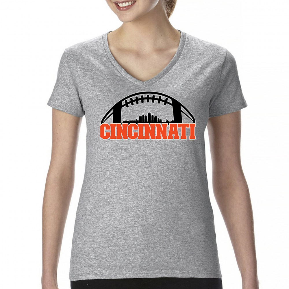 Celebrate Cincinnati and football with this bold skyline design under a football arch. Perfect for fans, tailgates, and game days!