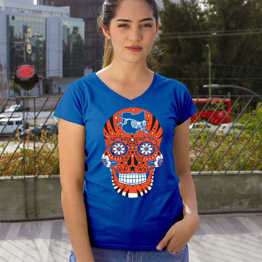 Celebrate Cincinnati football with this Sugar Skull design featuring the Queen City Paw. With underdog grit, black & orange pride, and Saturday football culture, it’s made for Game Day excitement, playoff energy, and fantasy league rivalries. A bold calavera for passionate Cincinnati fans.