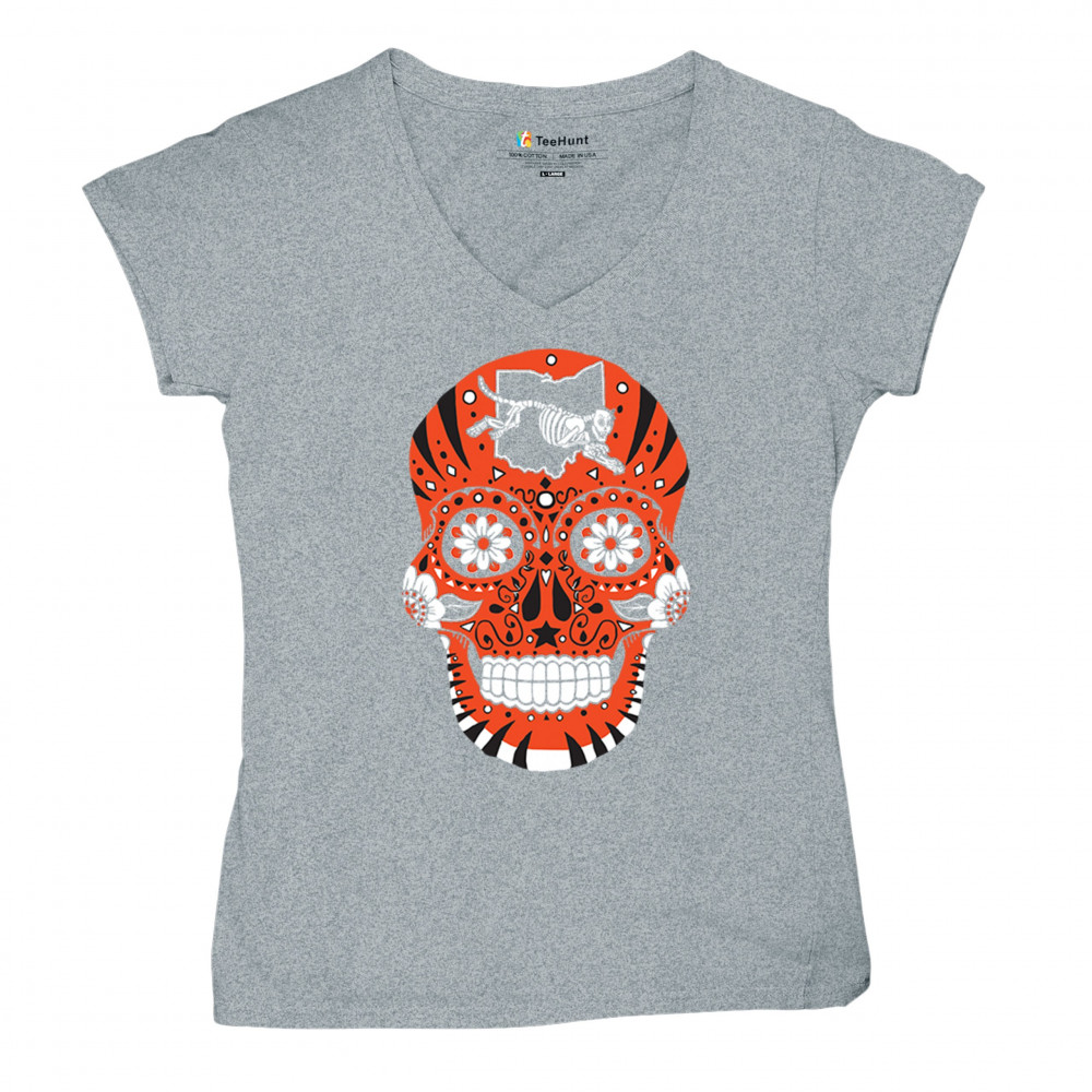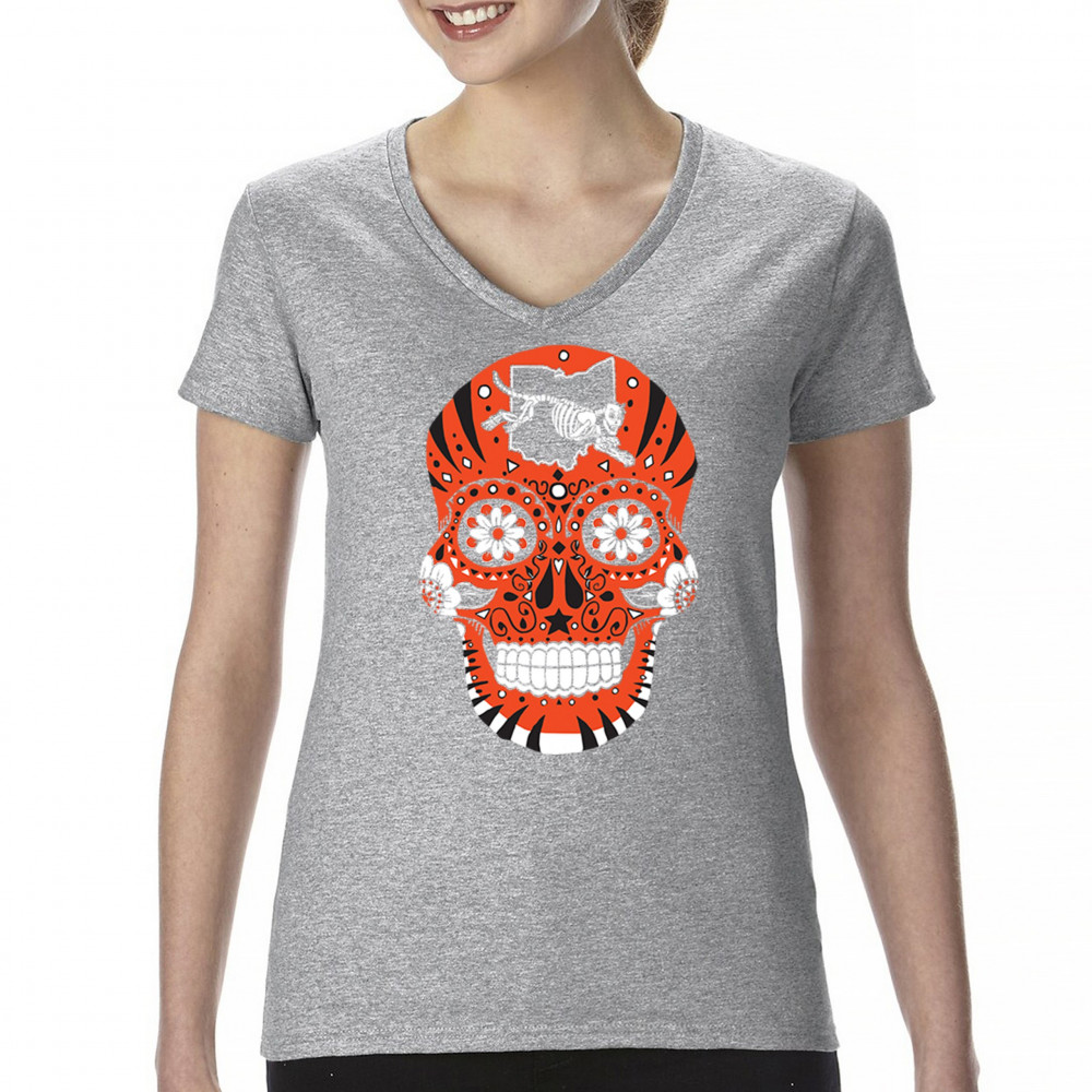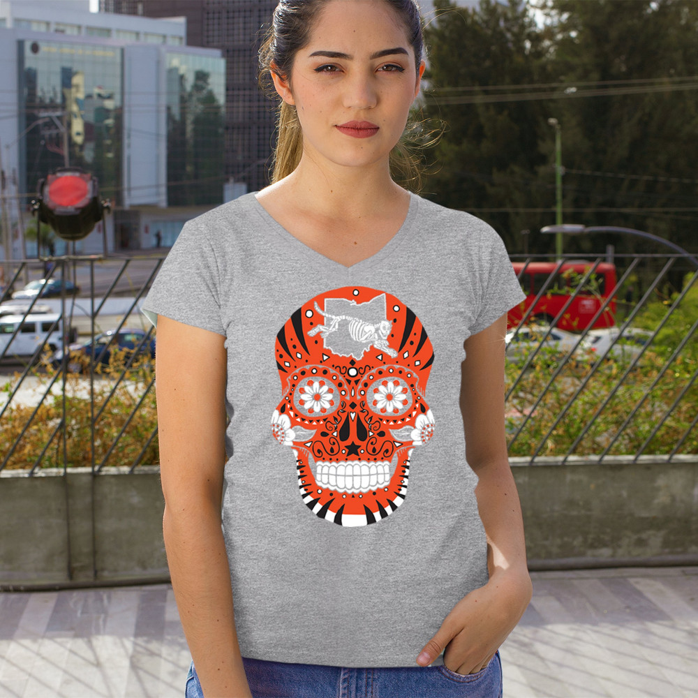 Cinci Sugar Skull with Queen City Paw, underdog grit, black & orange pride, Game Day energy, and playoff vibes.