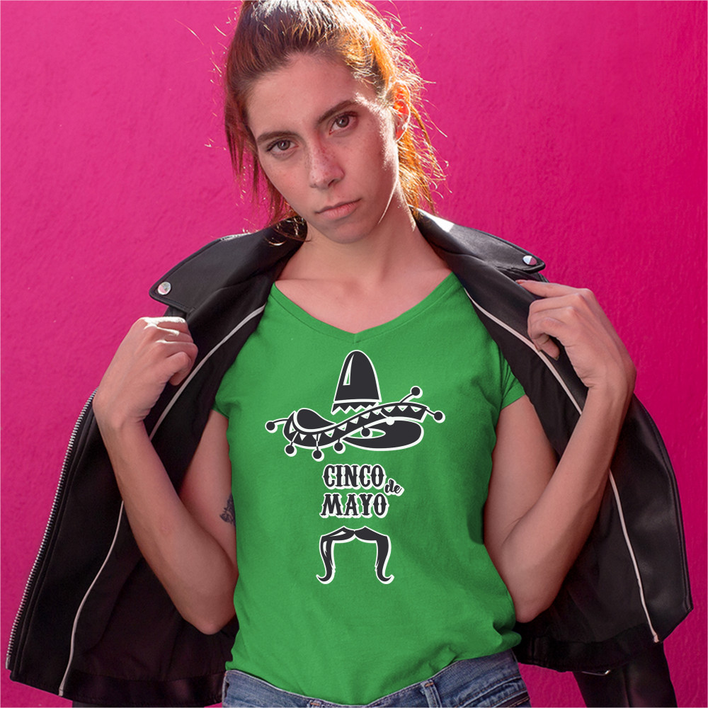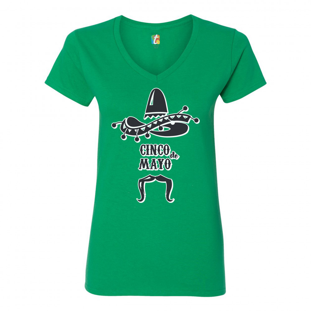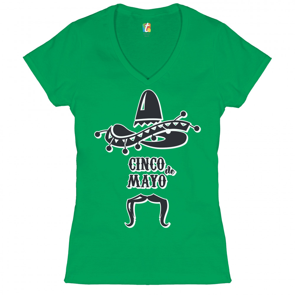 CINCO DE MAYO women's v-neck t-shirt party sombrero mexican culture fiesta tee green
