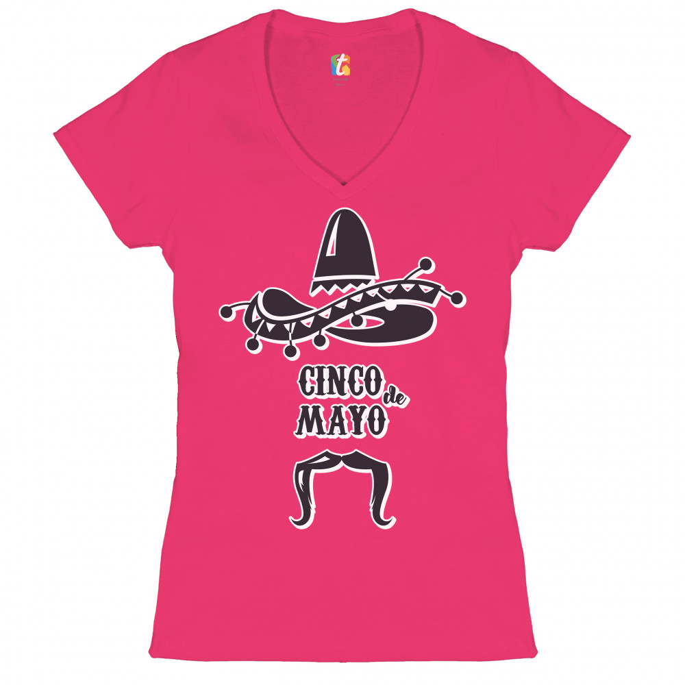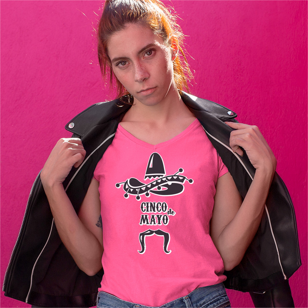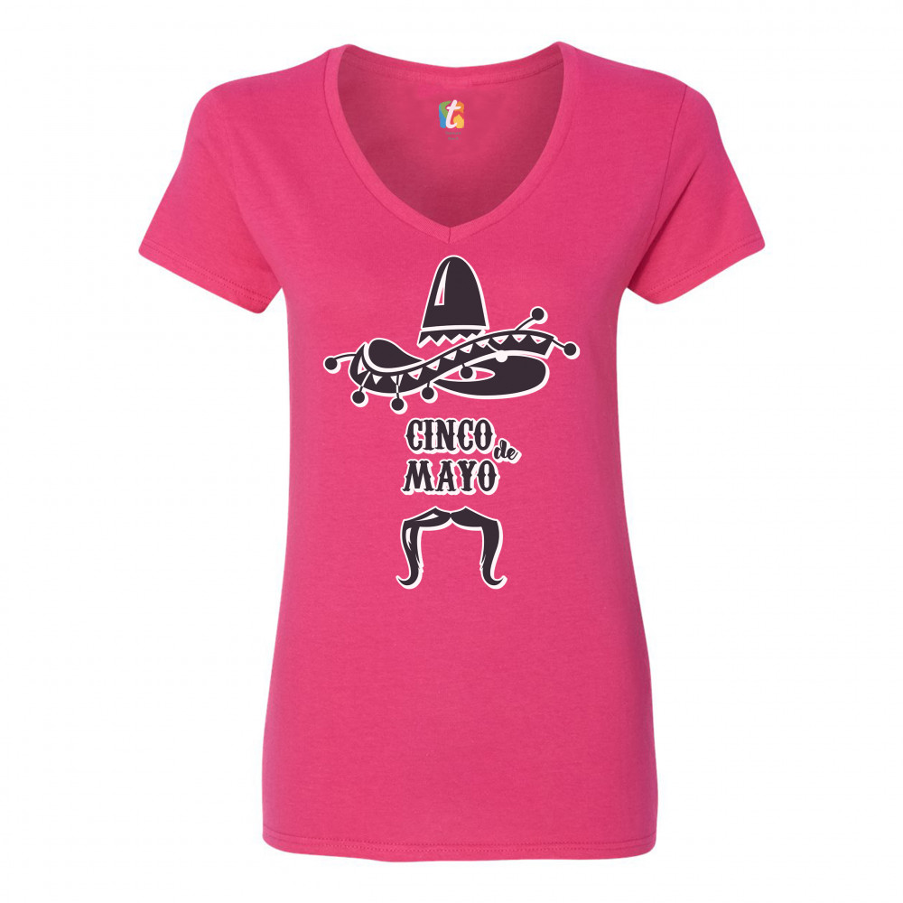 CINCO DE MAYO women's v-neck t-shirt party sombrero mexican culture fiesta tee pink