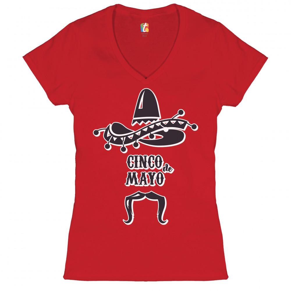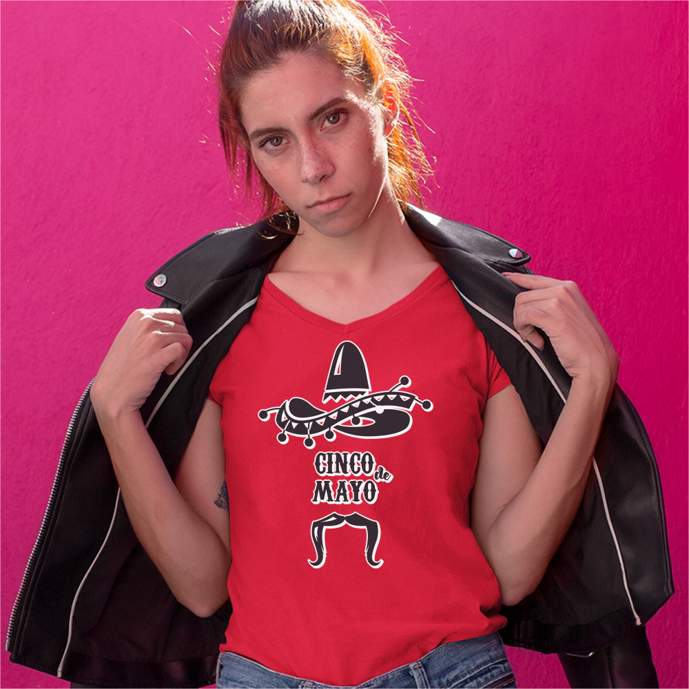 CINCO DE MAYO women's v-neck t-shirt party sombrero mexican culture fiesta tee red